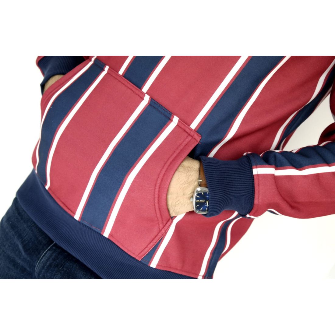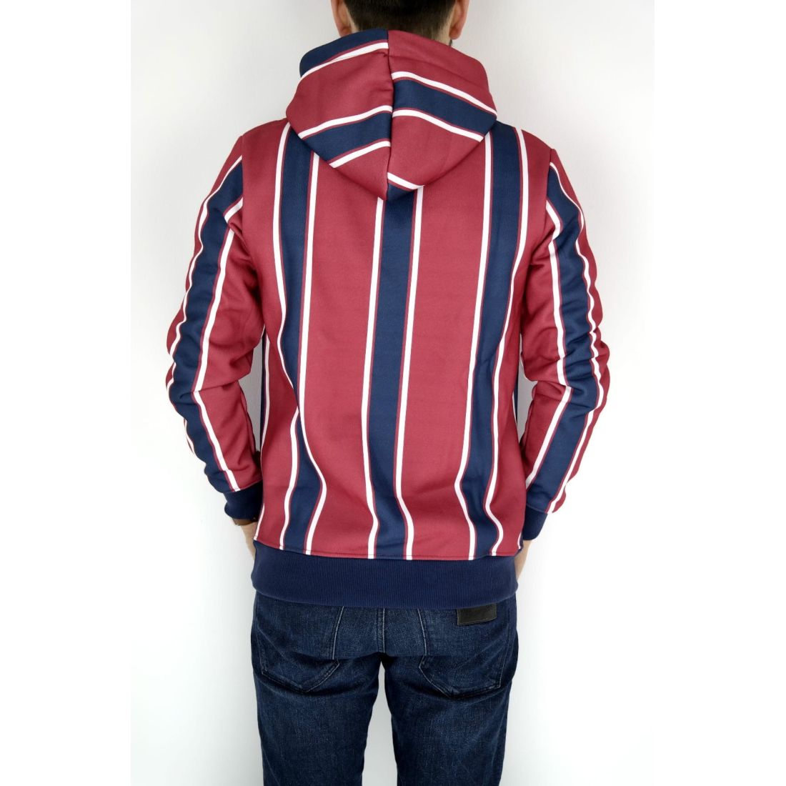 DEVOTE bluza męska granatowa czerwona z kapturem L