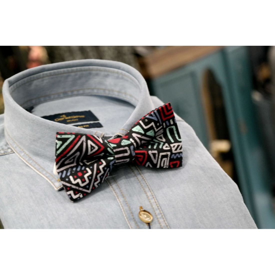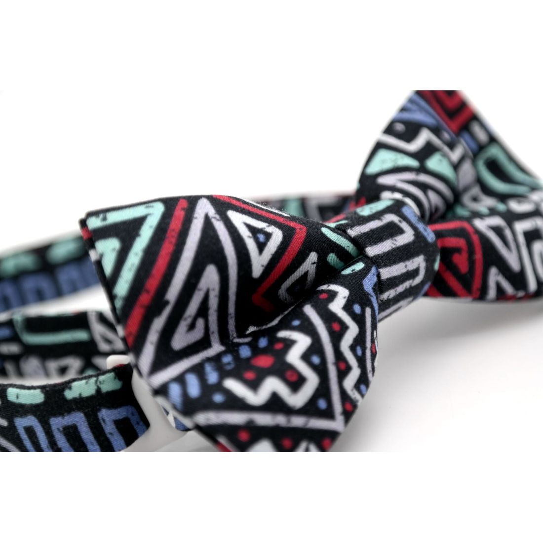 - Grafika została zaprojektowana przez doświadczony zespół Giovanni Pera. Kolorowy nadruk został wykonany na satynie przy użyciu nowoczesnej metody druku, który nie zmienia struktury tkaniny. Każda mucha posiada wygodne zapięcie na pasku oraz regulację obwodu.