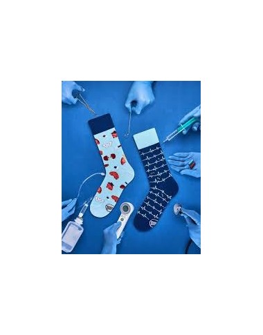 - Nasze medyczne skarpety dla kobiet i mężczyzn to egzemplarz, który można potraktować niczym studium przypadku. Z jednej strony mamy zapis elektrokardiogramu, a z drugiej – cały pakiet narządów i pigułek. No to co? Zdrówko! Będą doskonale prezentować się do spodni, spódnicy i fartucha, zdadzą egzamin u rezydentów i profesorów, rozweselą przełożonych i… pacjentów!