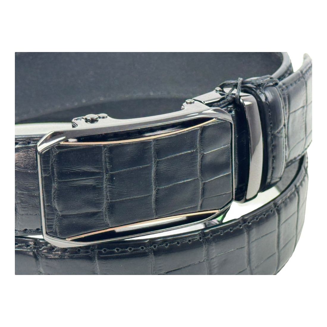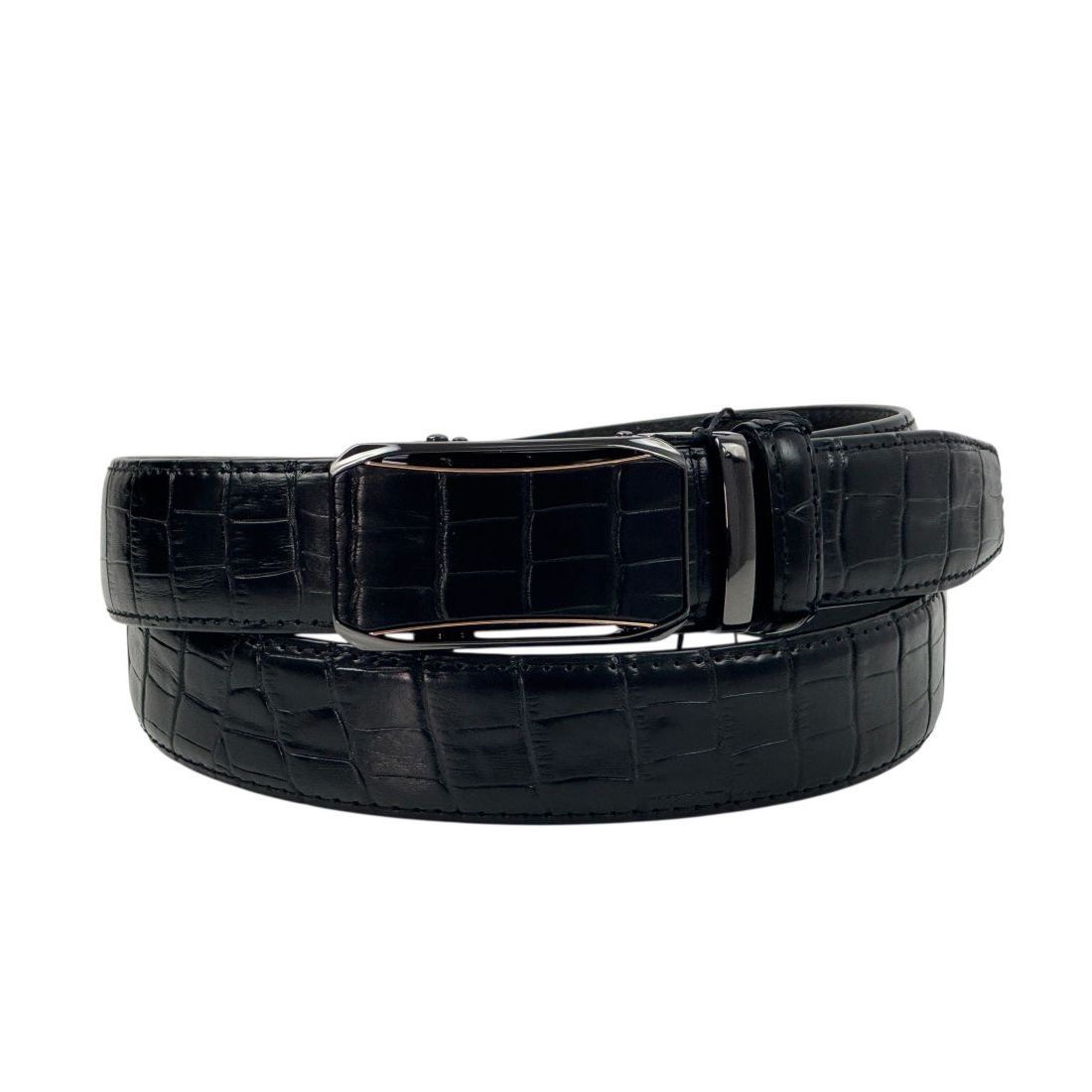 MASSILIANO SERGIO Pasek męski czarny, złoty PS2 możliwość skracania, klamra - automatyczna, wzór - krokodyla