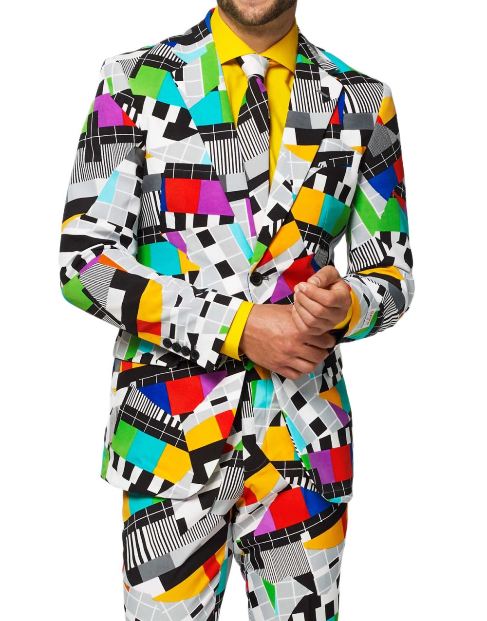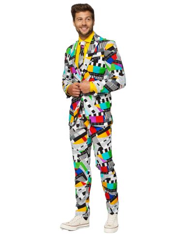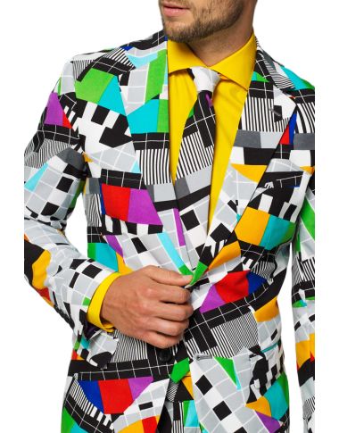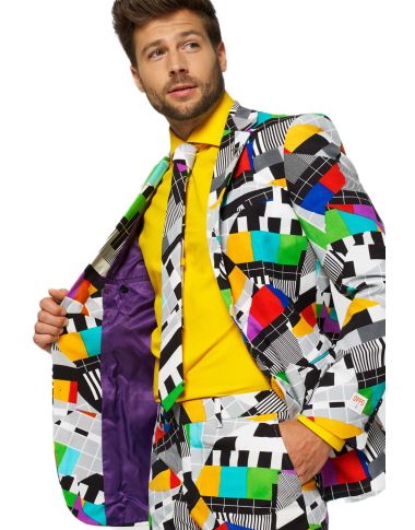 OPPOSUITS Garnitur męski z krawatem, kolorowy, telewizyjny wzór, TV, casual, zakończenie programu