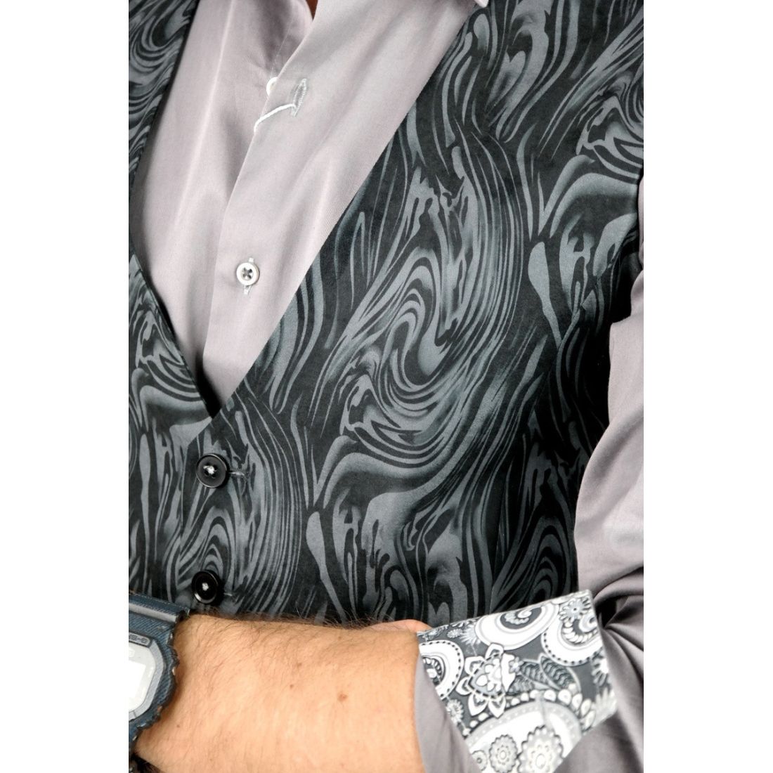 GIOVANNI PERA T-shirt męski szary D617-S w szpic, serek, SŁOJE, logo, elastan