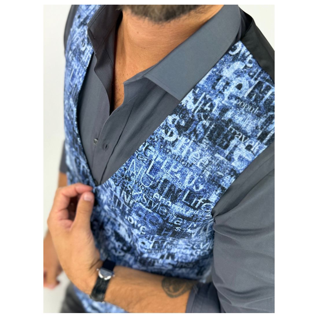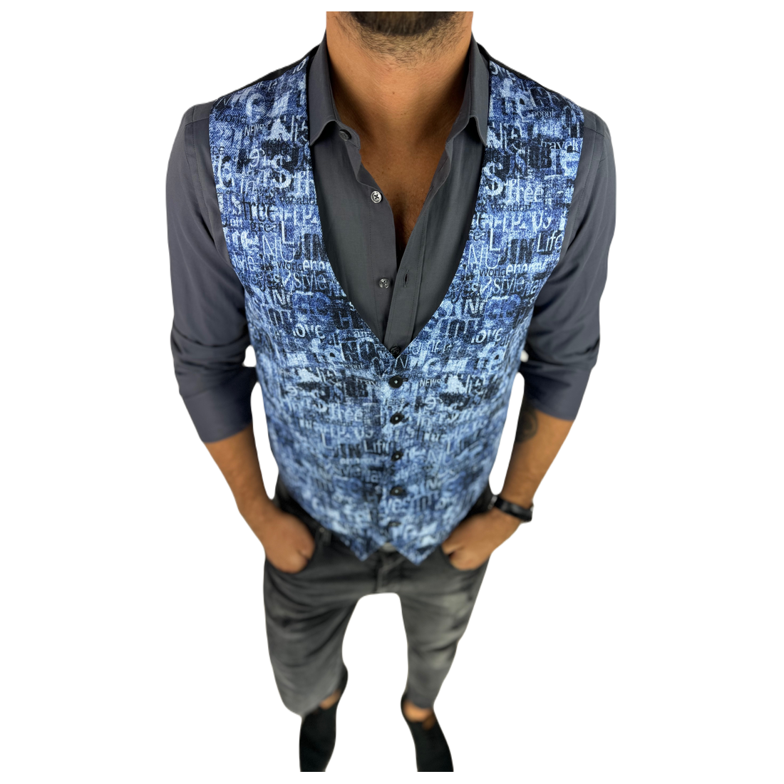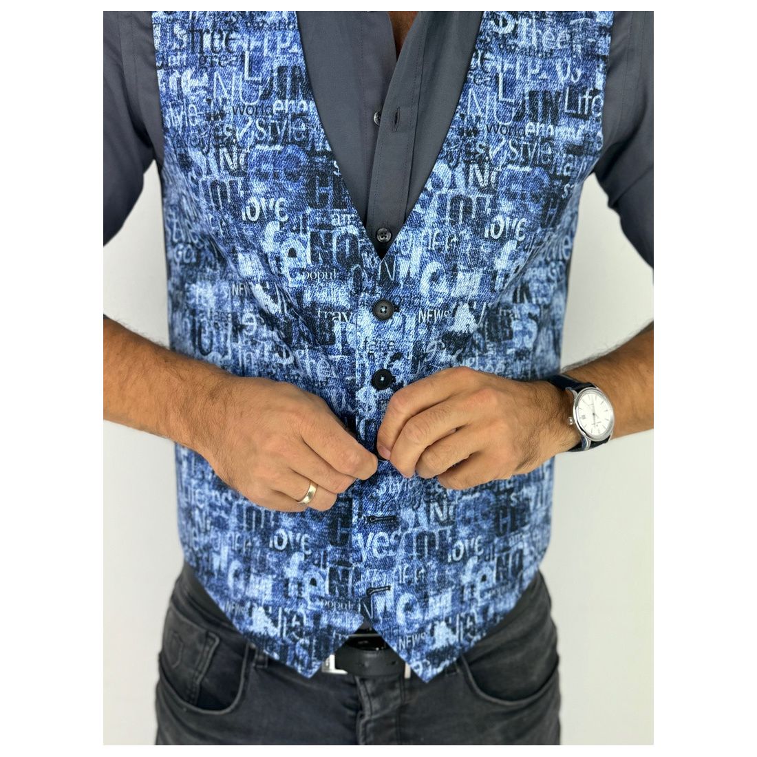 GIOVANNI PERA kamizelka męska D625 biała, czarny marmur, elegancka, bezrękawnik