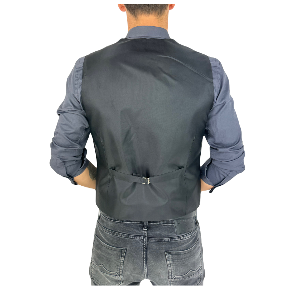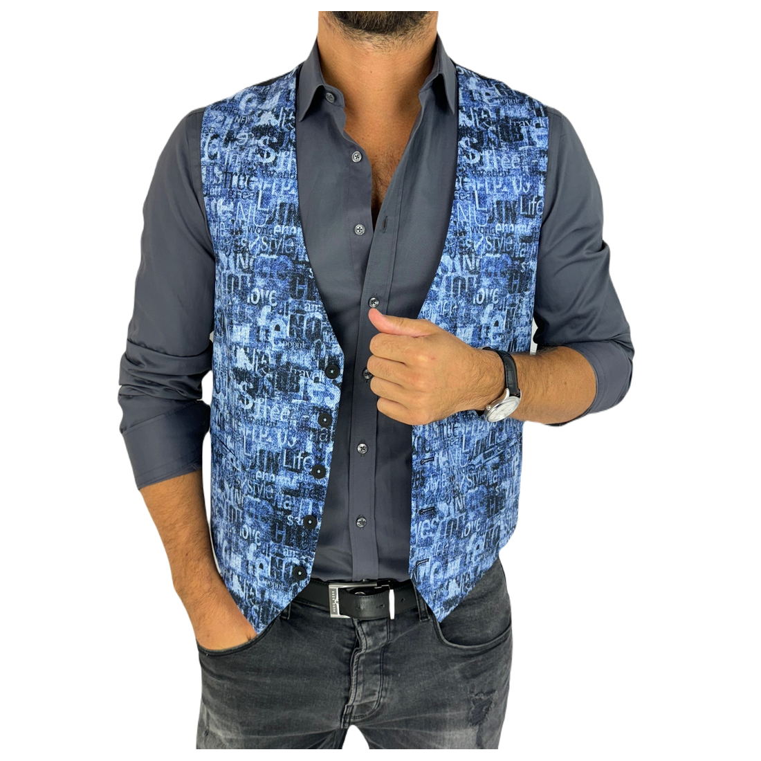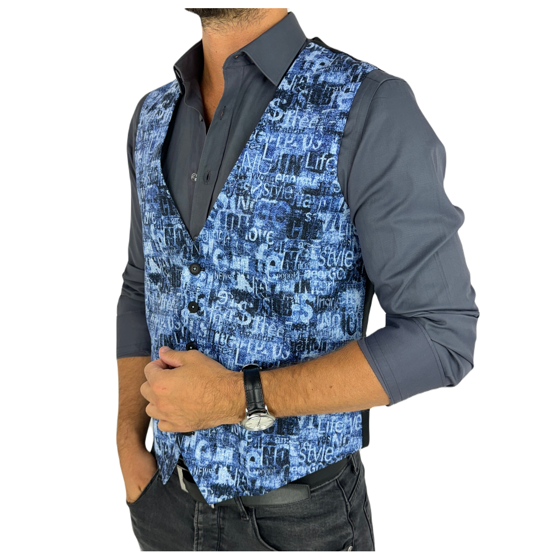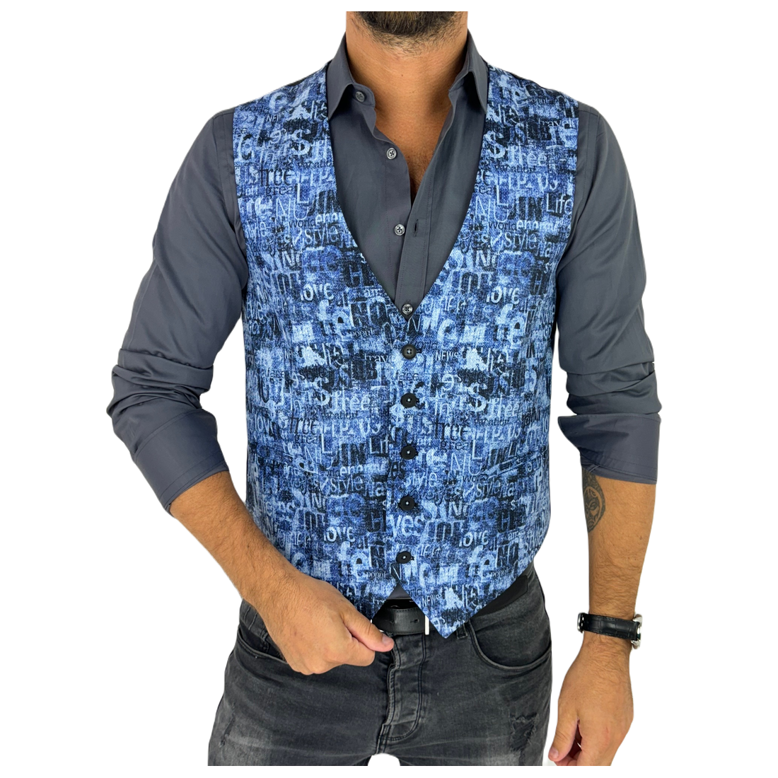 GIOVANNI PERA kamizelka męska D625 biała, czarny marmur, elegancka, bezrękawnik