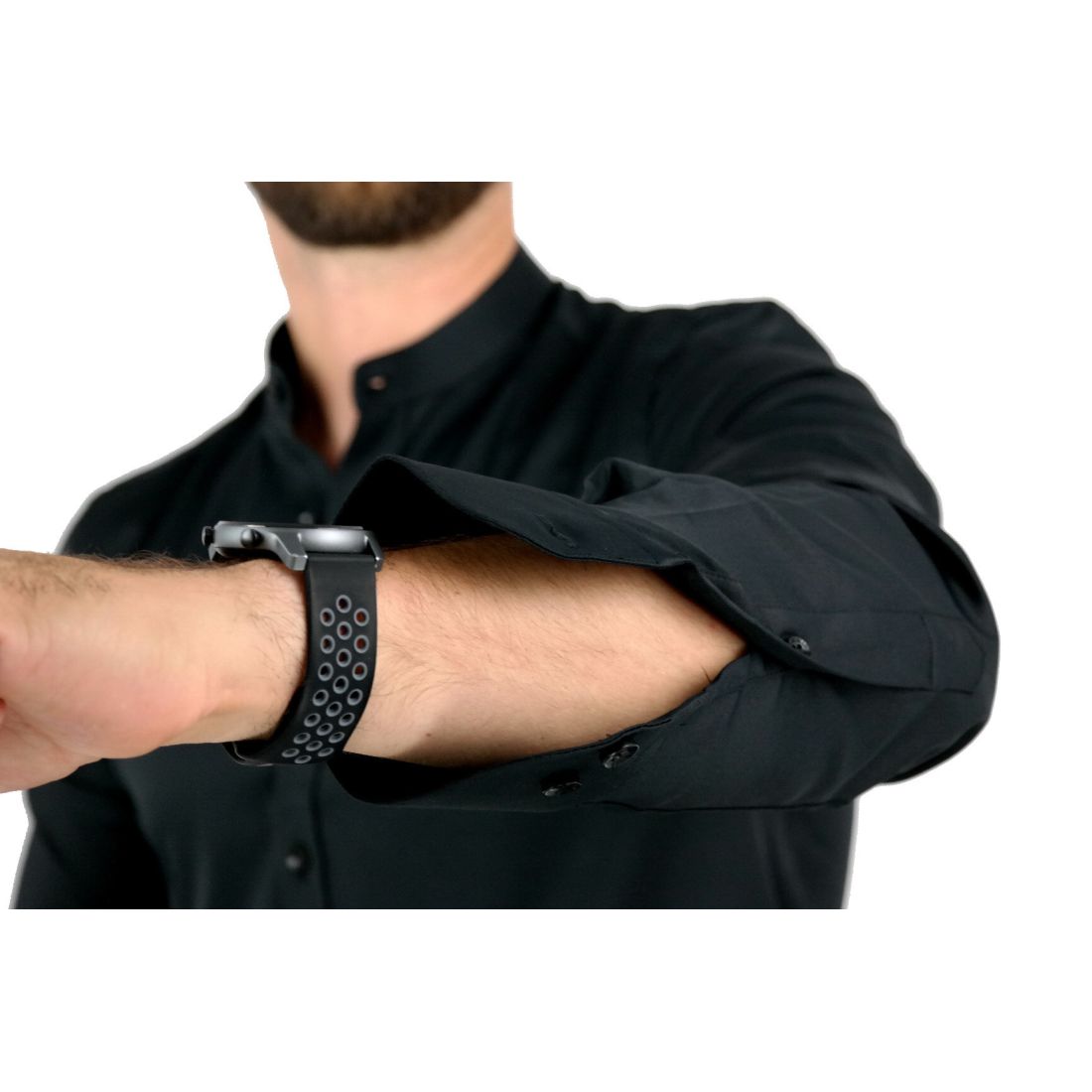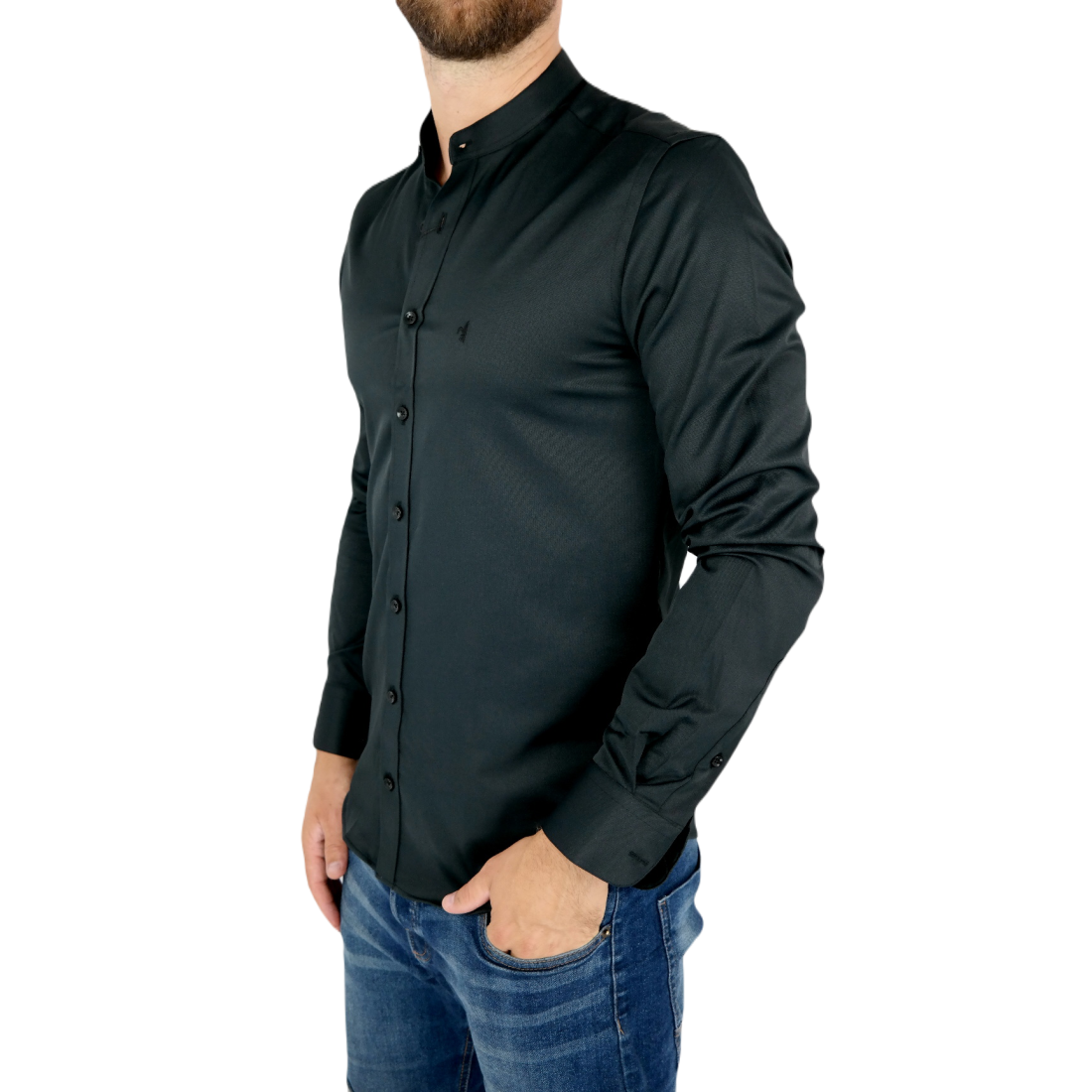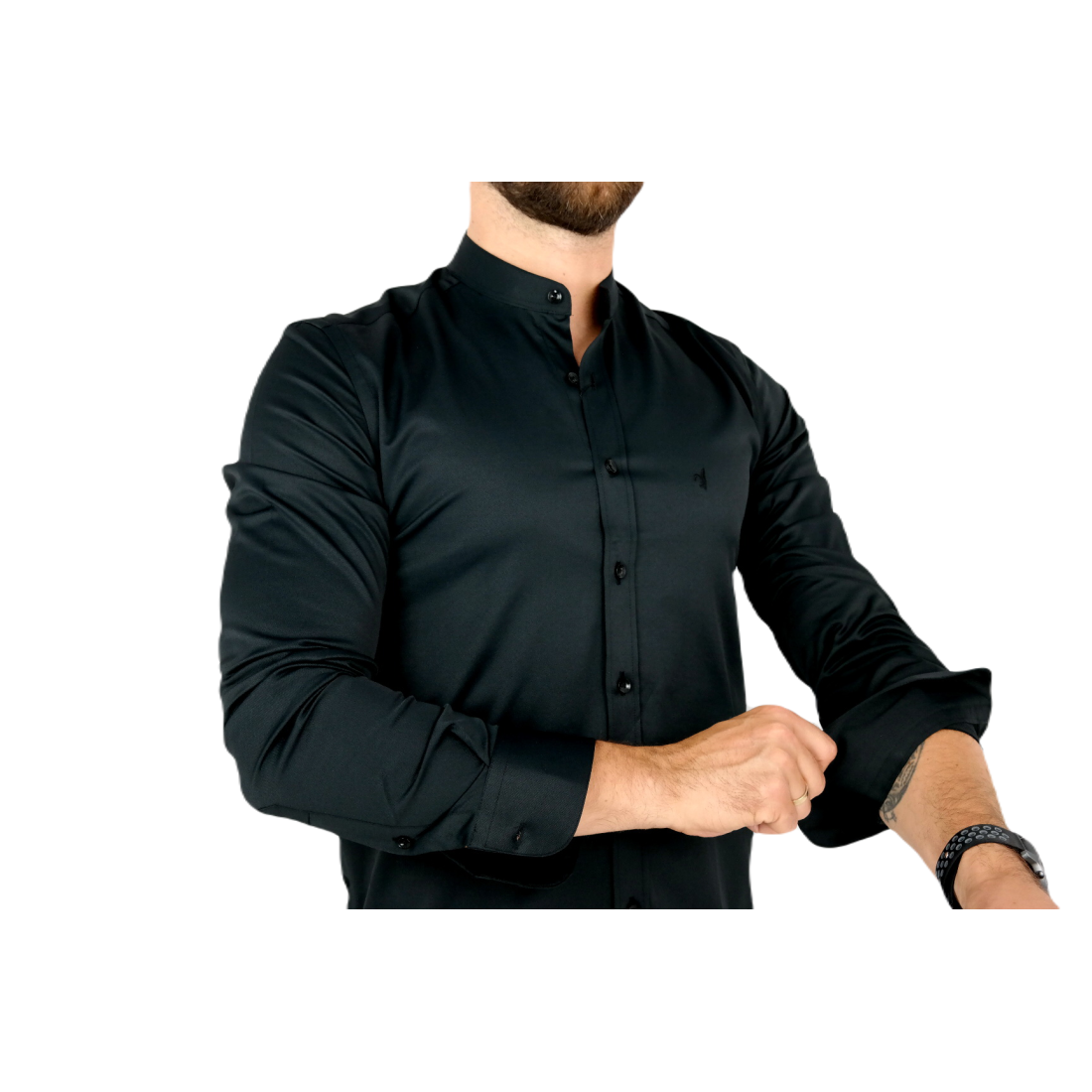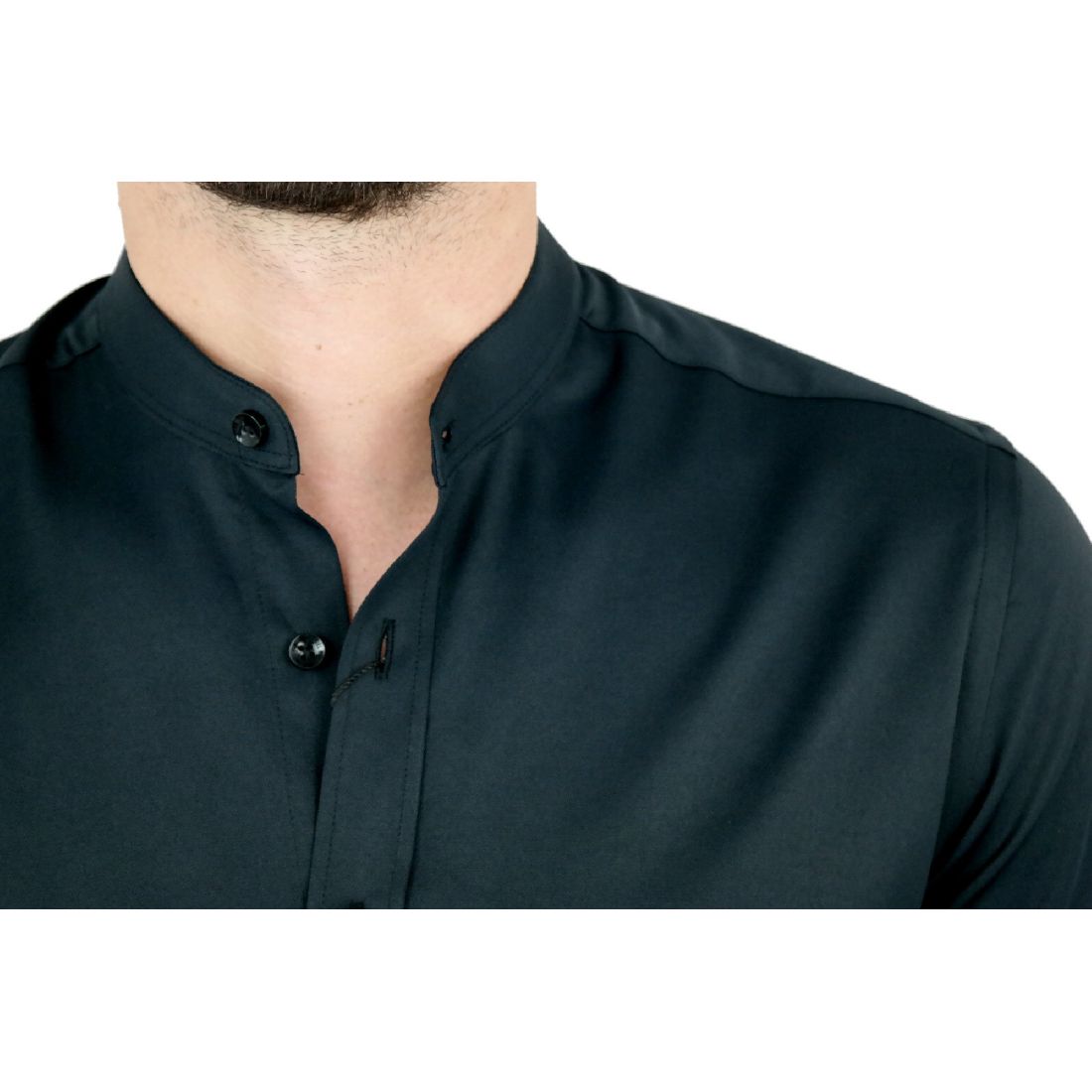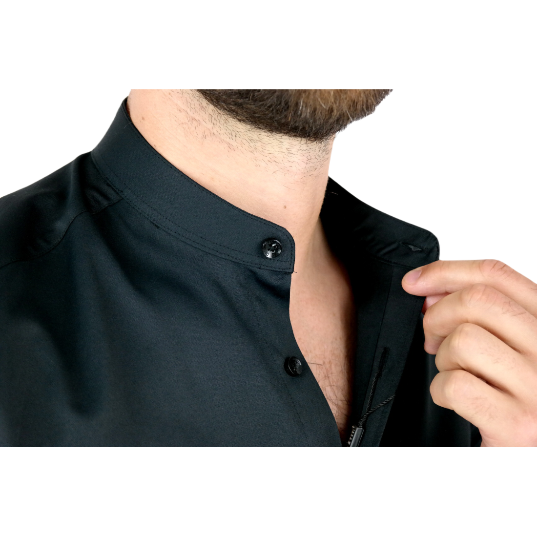DANIEL BESSI Koszula męska na spinki biała elegancka fb002 na stójce, czarne guziki