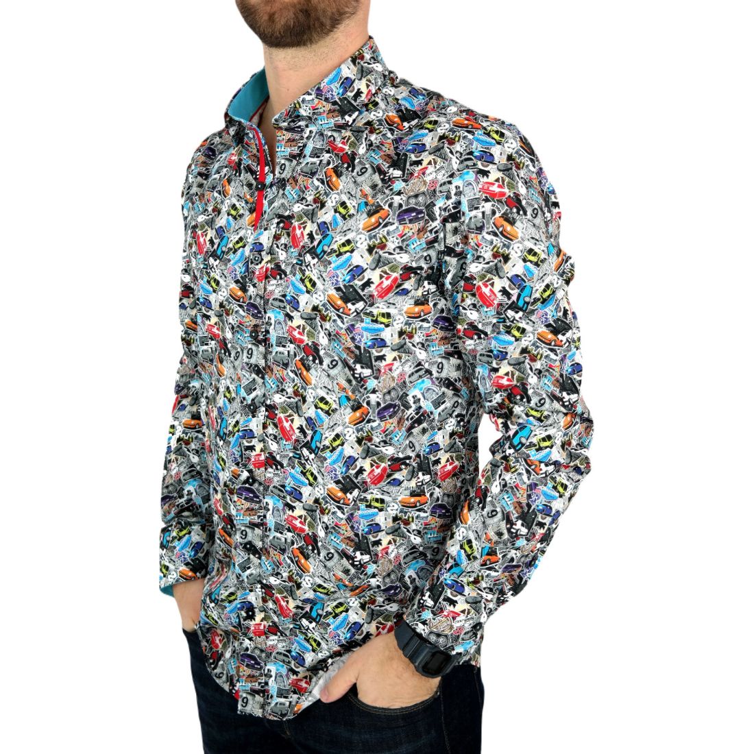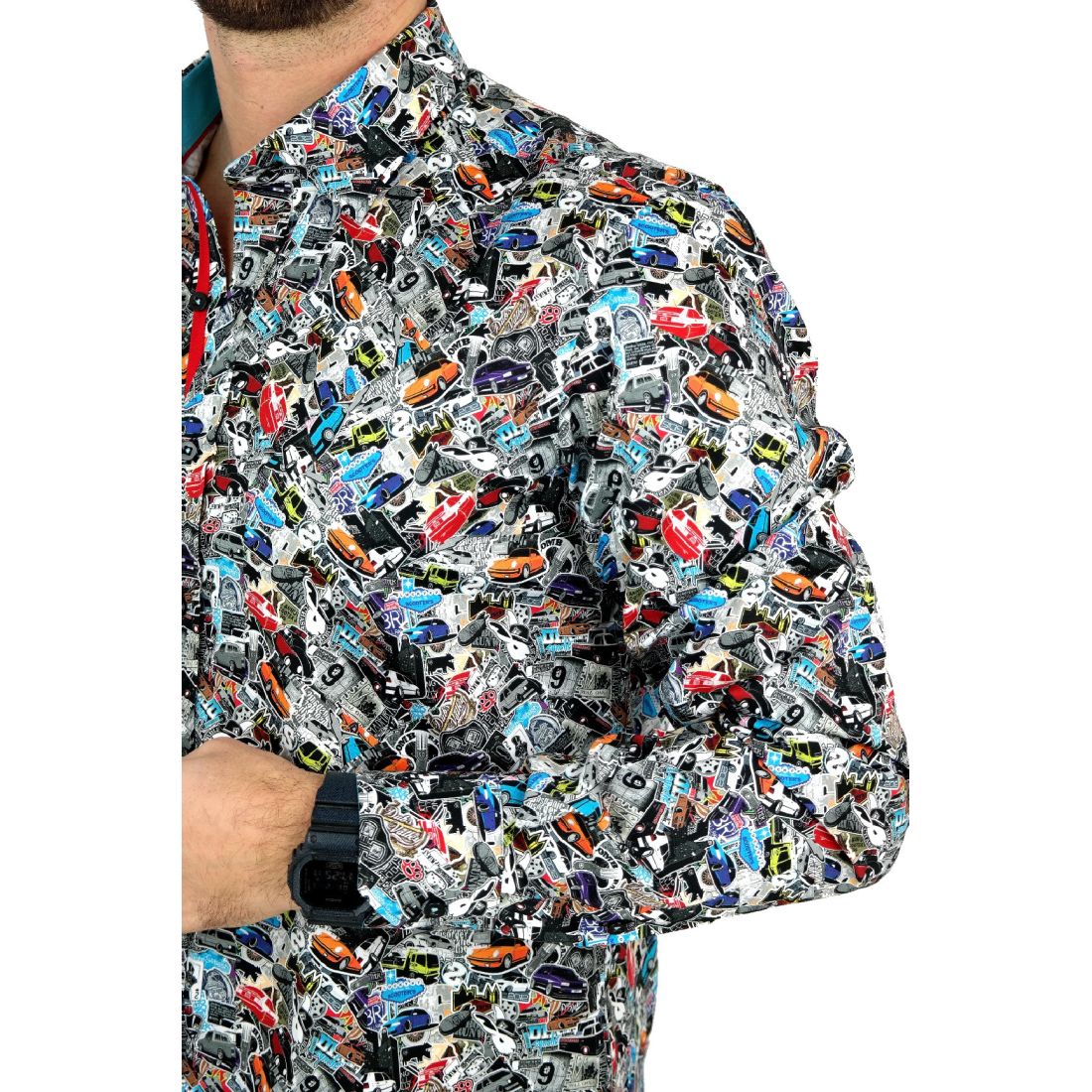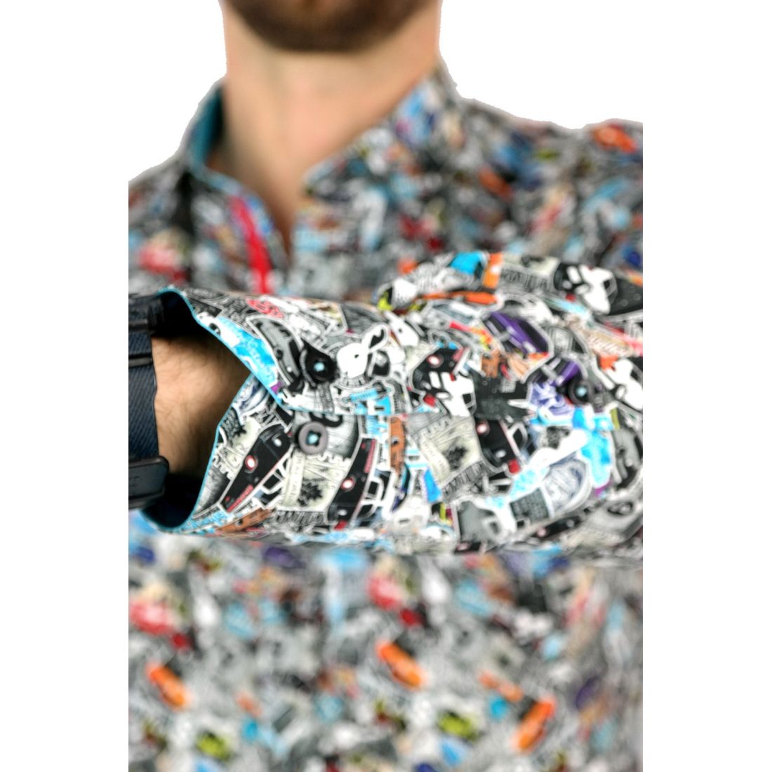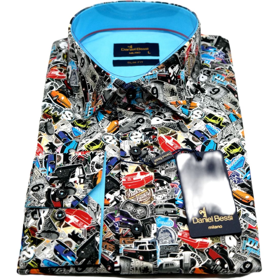 DANIEL BESSI Koszula męska fb605 ekskluzywna panterka kwiaty kolorowa