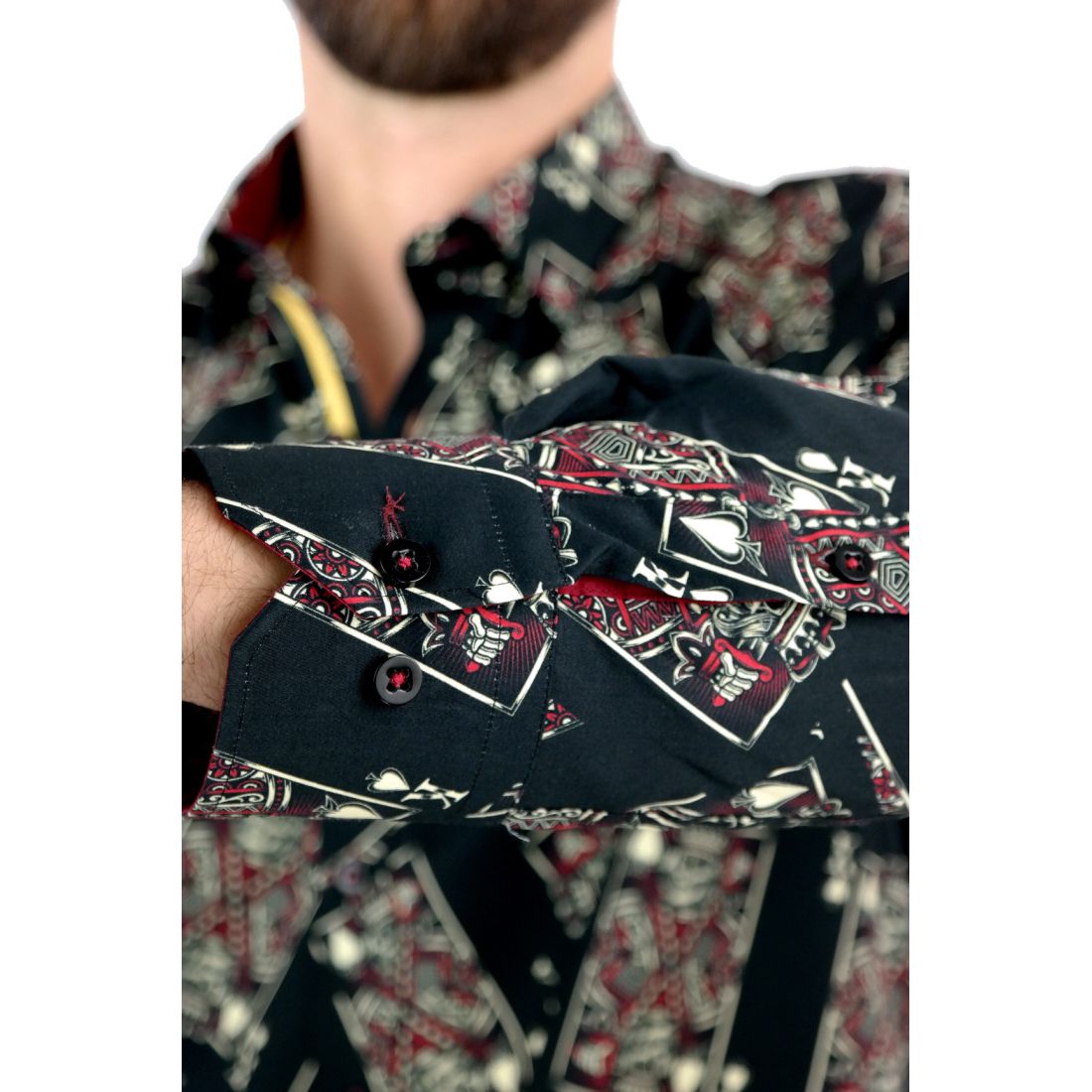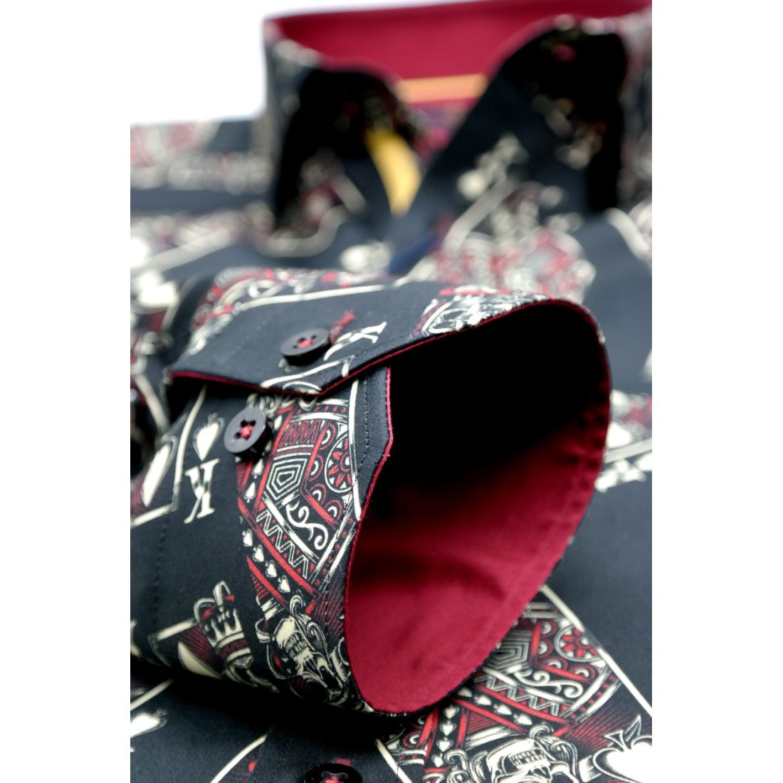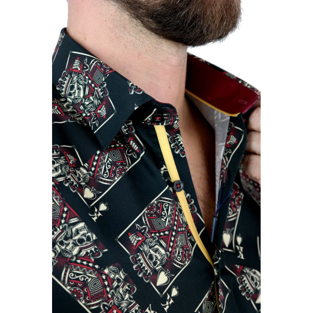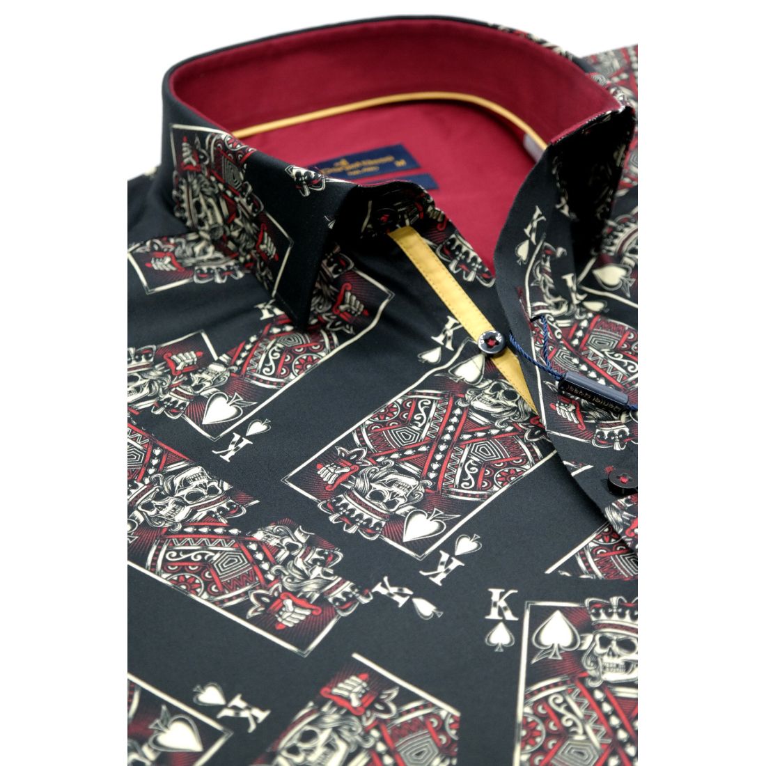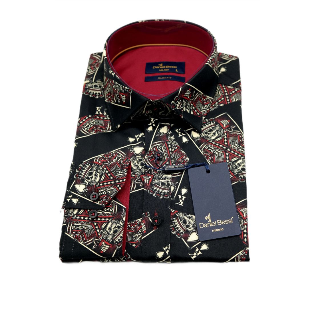 DANIEL BESSI Koszula męska fb045 czarna, KARTY, czaszki, król
