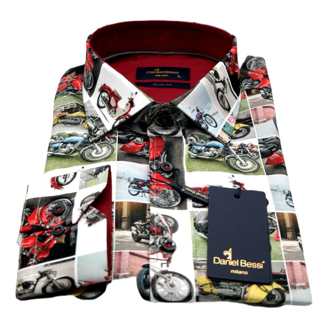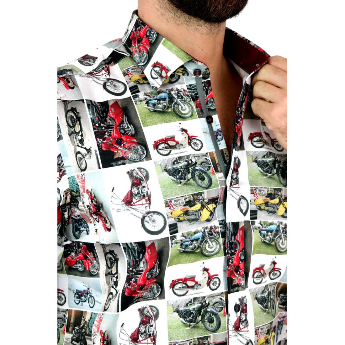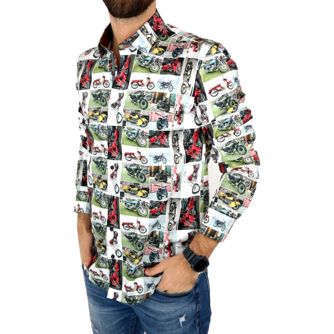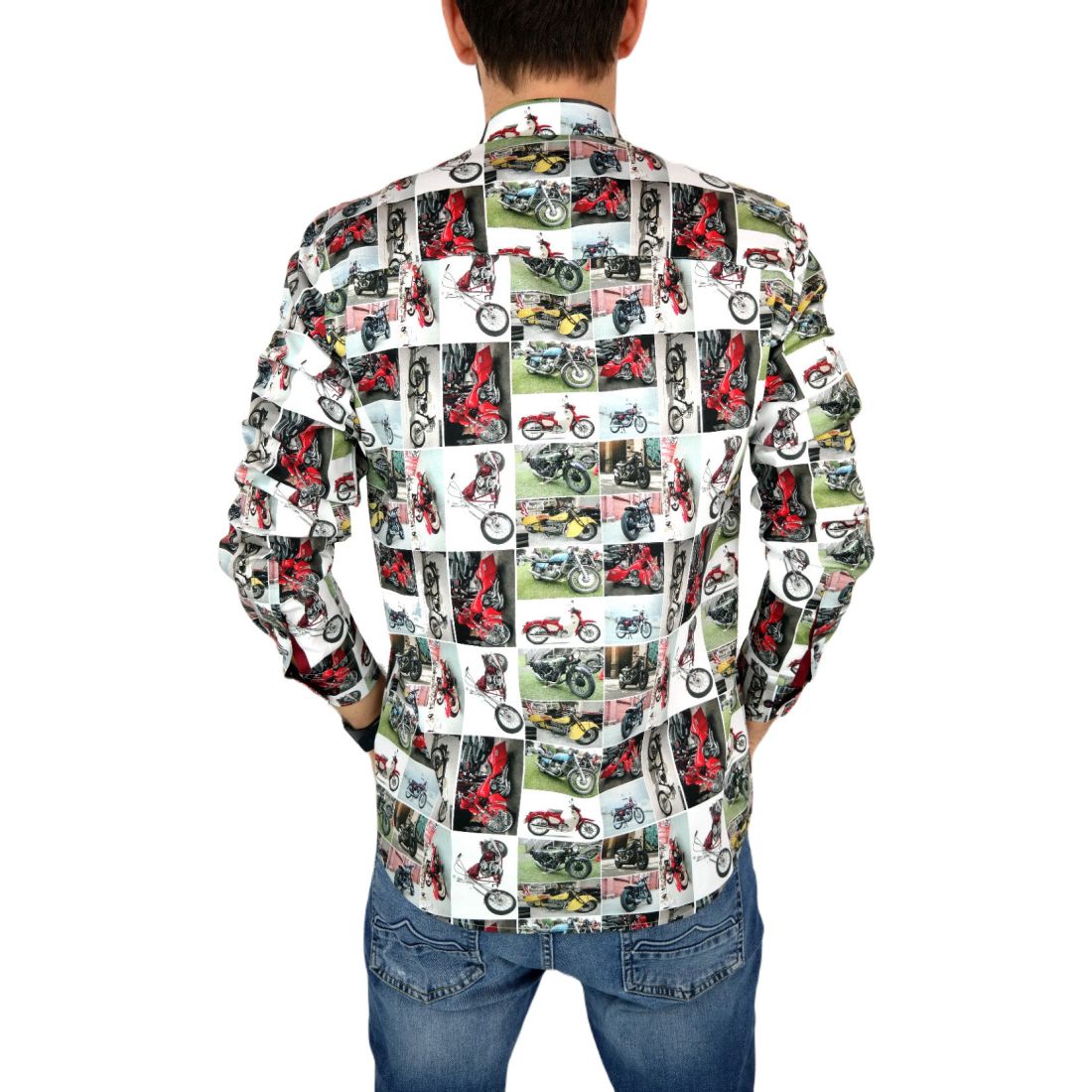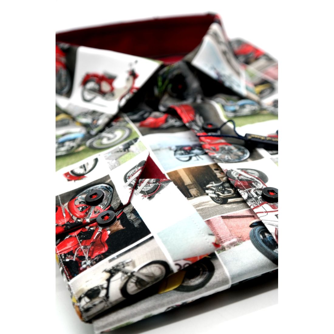 GIOVANNI PERA Koszula męska na krótki rękaw GPK42 kolorowa pieczątki podróże VISA