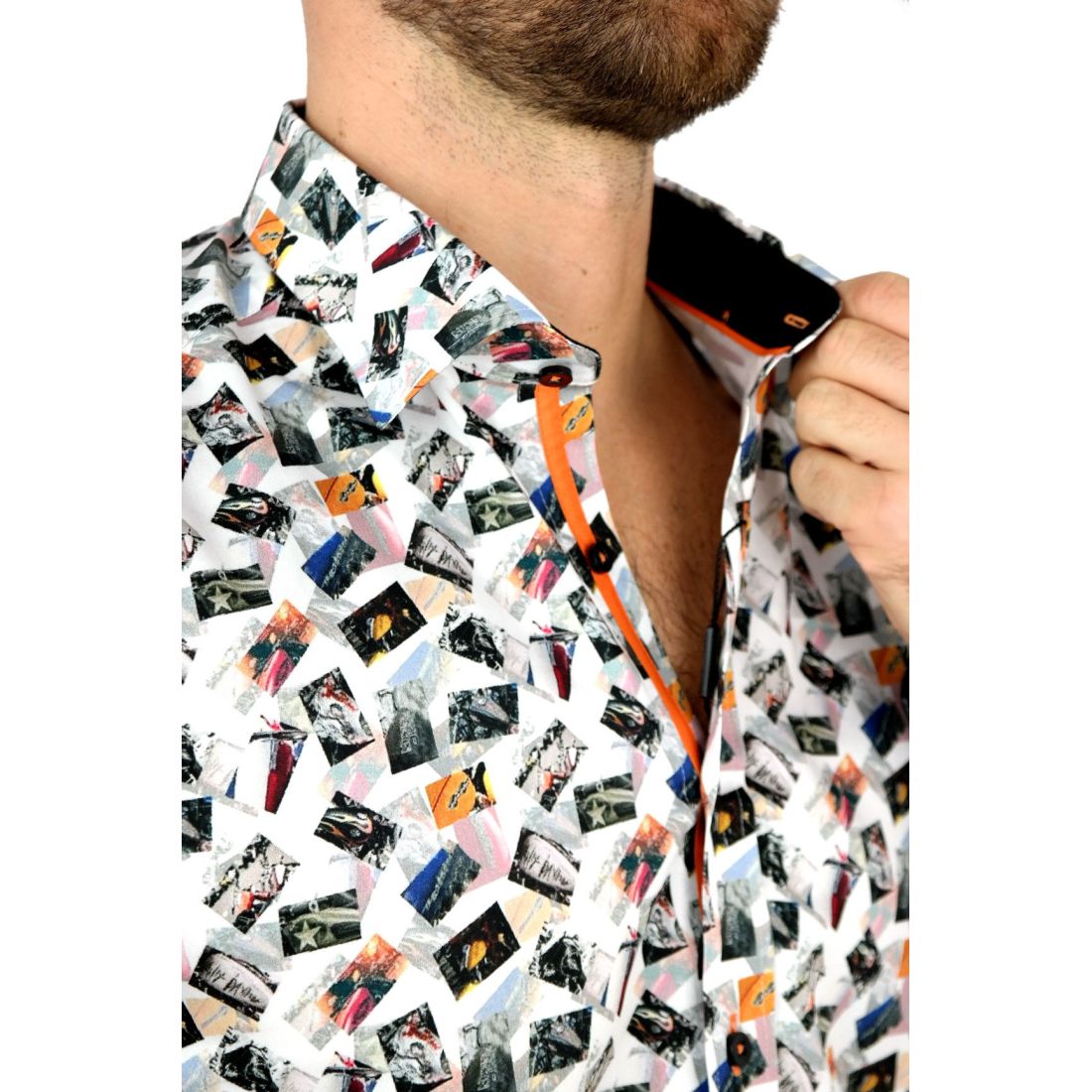 DANIEL BESSI Koszula męska fb074 motory, motocyklowe zbiorniki paliwa, zdjęcia