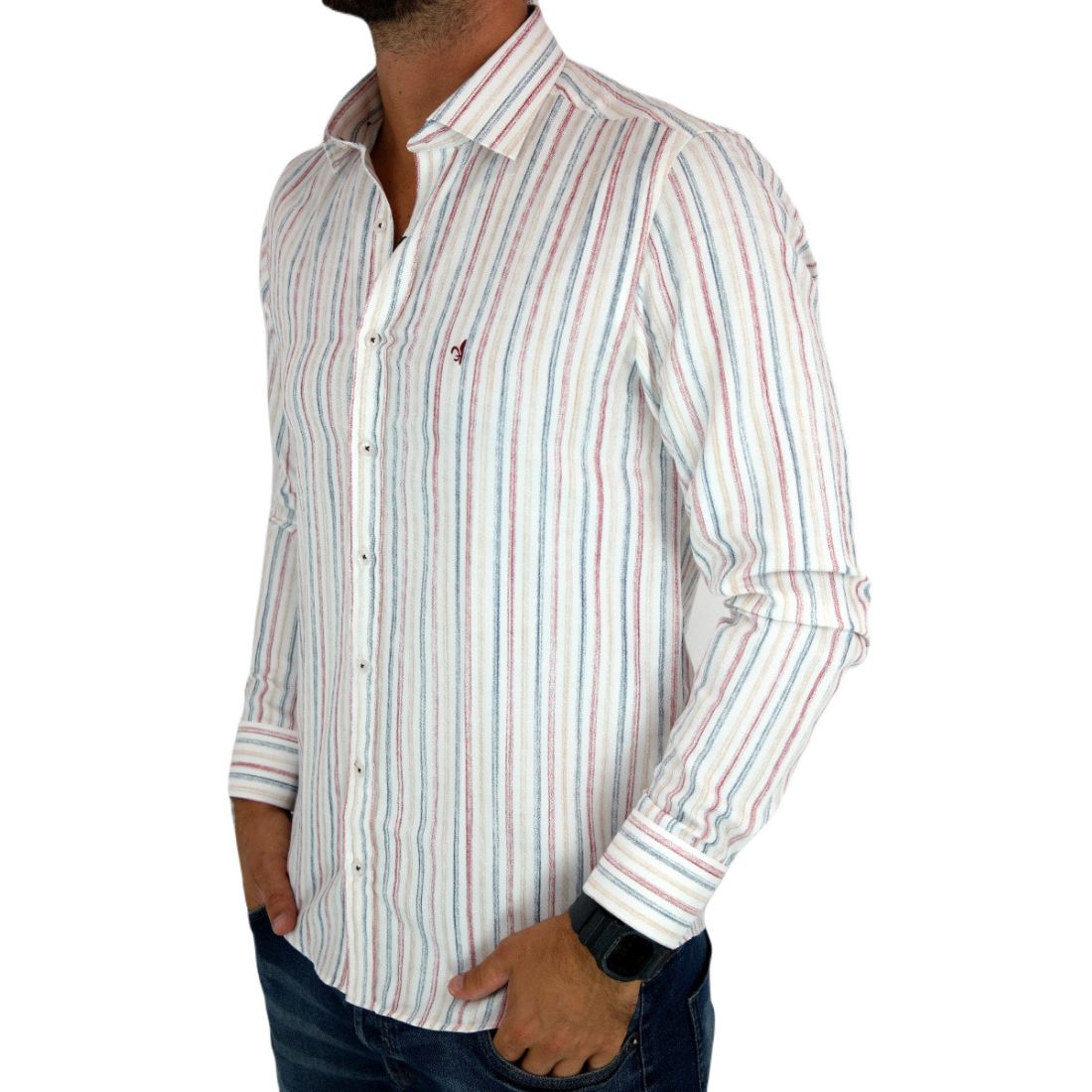 DANIEL BESSI Koszula męska fb113 biała, w kolorowe paski | Sklep GriShop.eu | Koszule