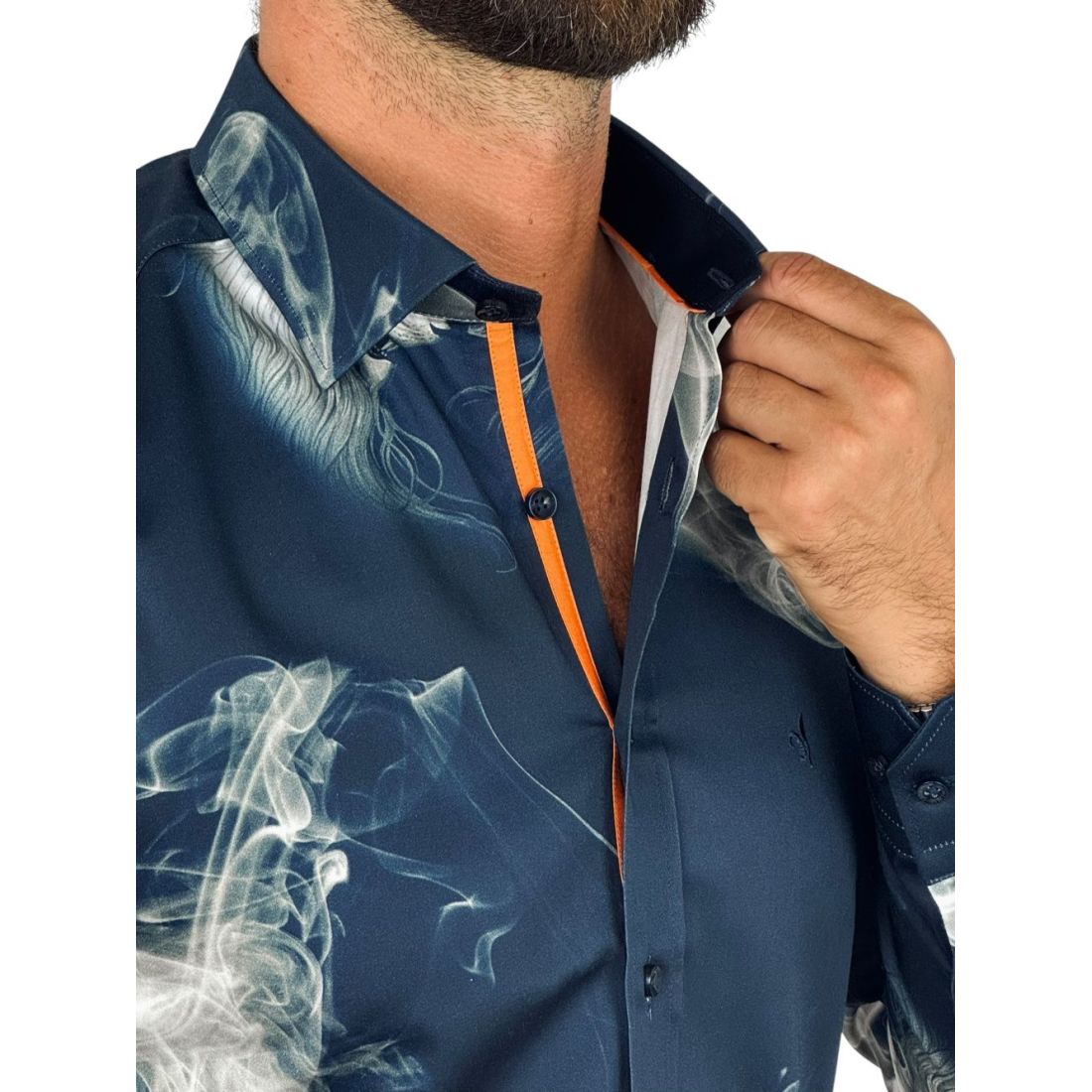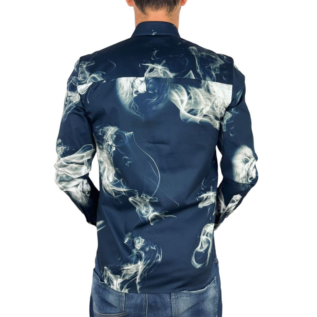 DANIEL BESSI Koszula męska fb129 granatowa, DYMY, lew | Sklep GriShop.eu | Koszule