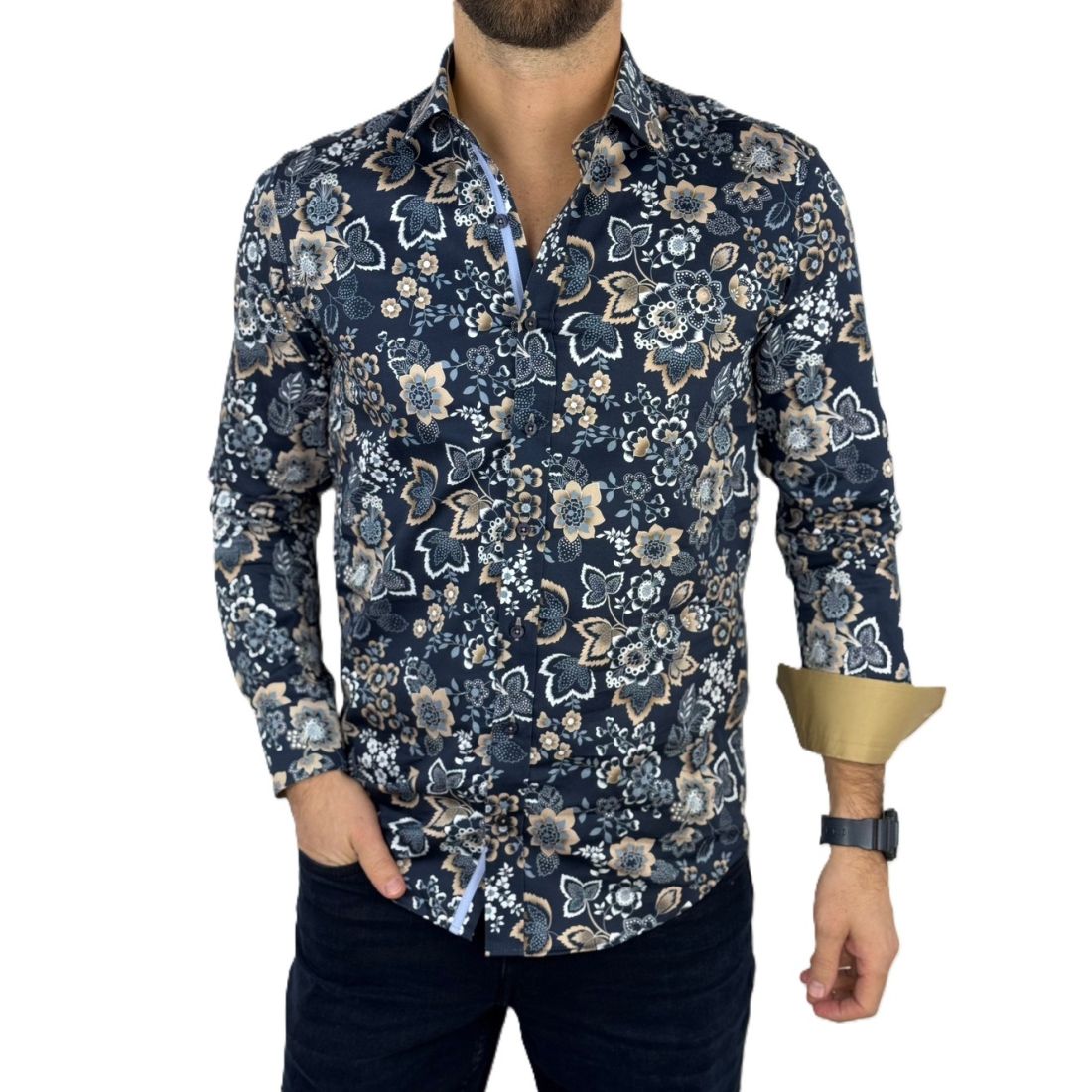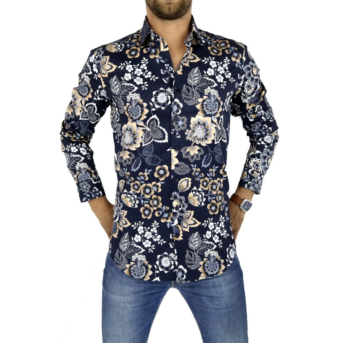 DANIEL BESSI Koszula męska fb120 biała, kolorowe grochy dla malarza artysty