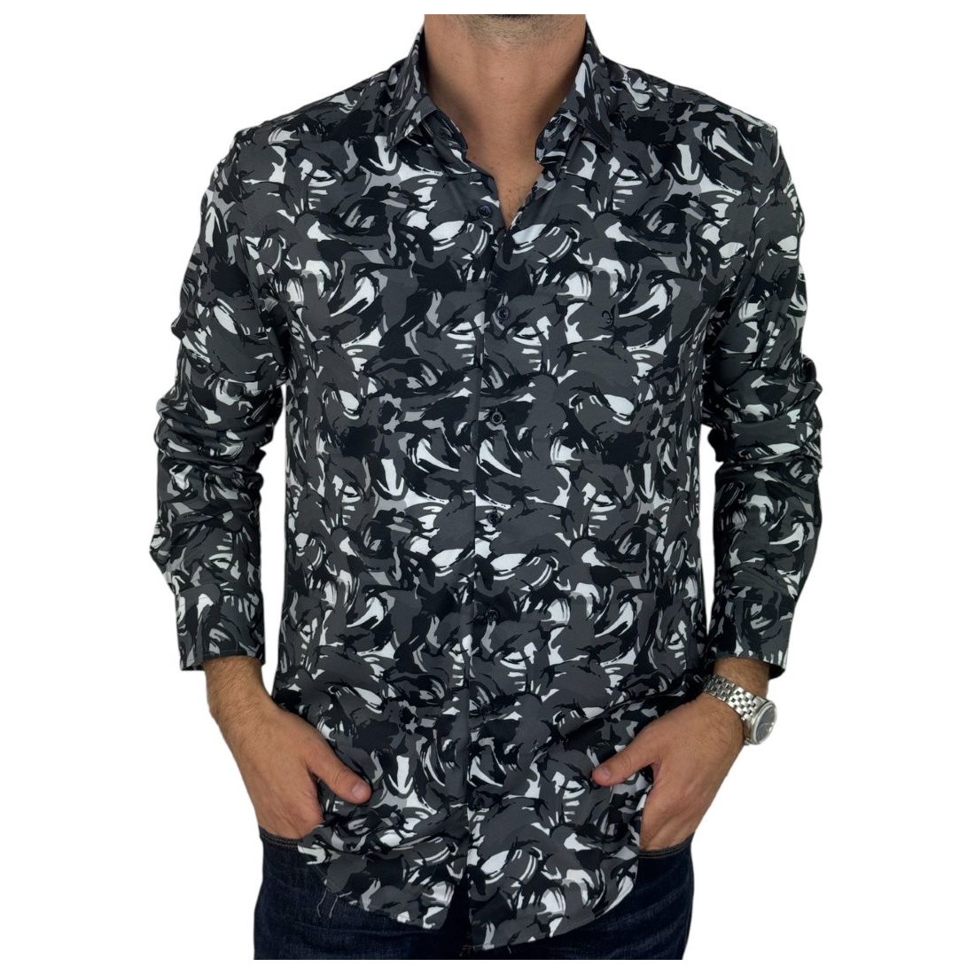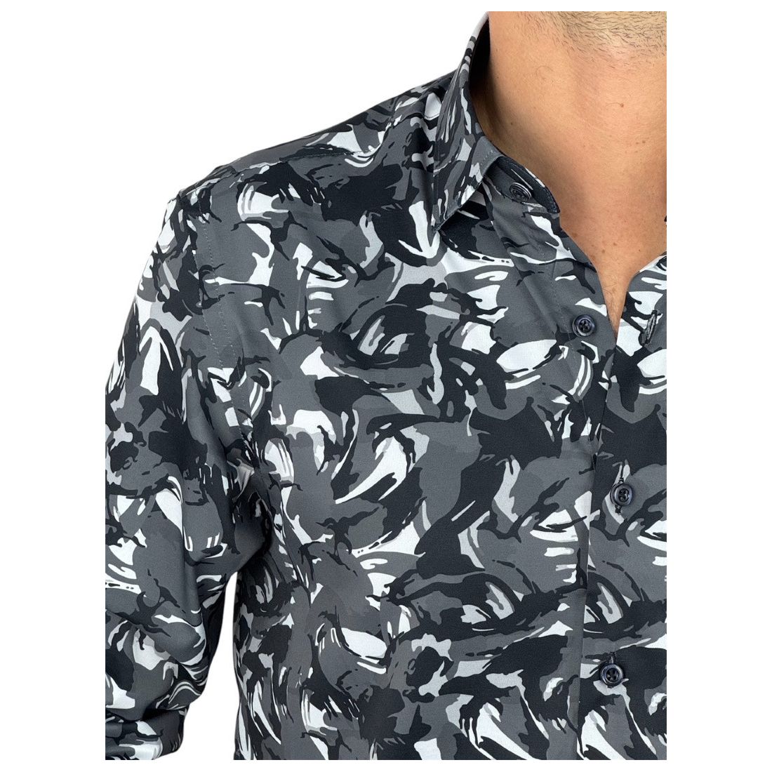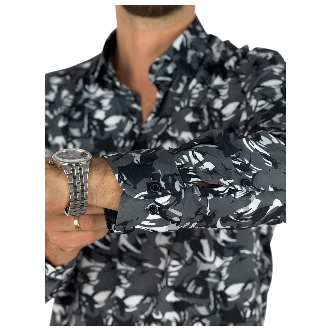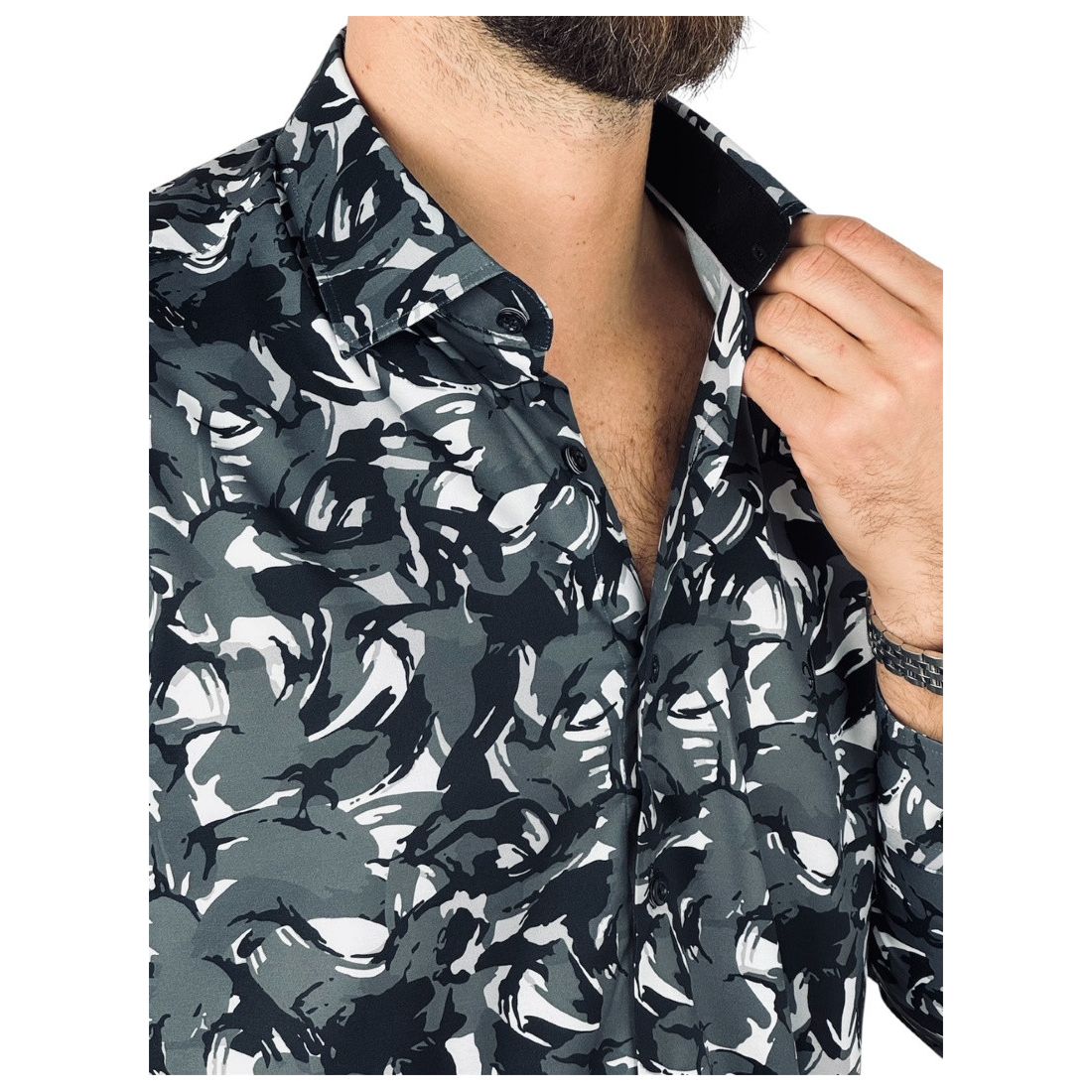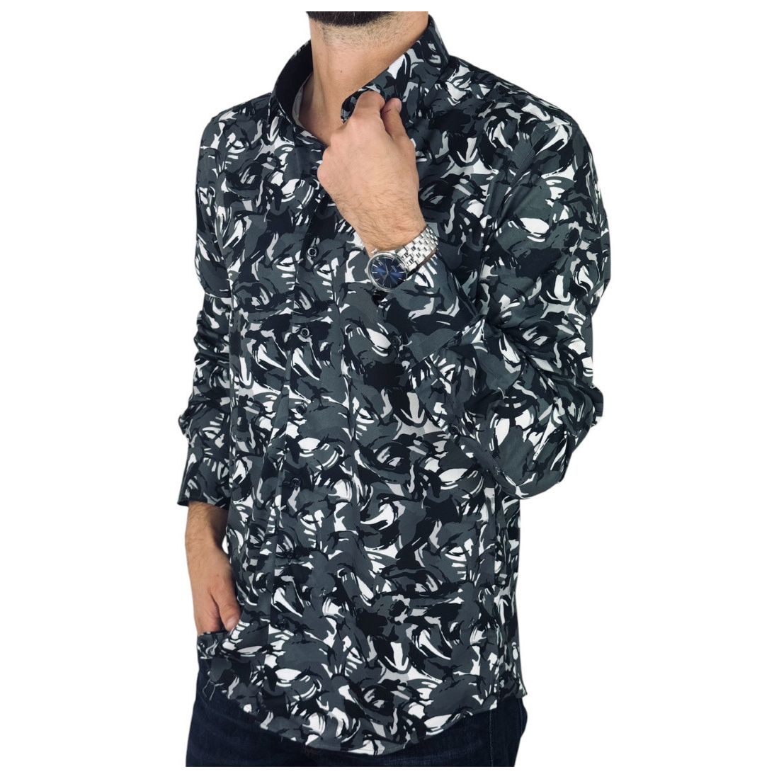 DANIEL BESSI Koszula męska fb140 szary, biały, czarny, maziaje, efekt jedwabiu | Sklep GriShop.eu | Koszule