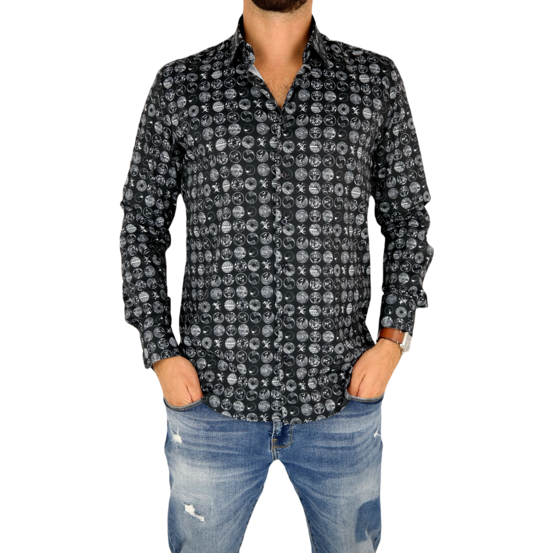 DANIEL BESSI Koszula męska fb150 czarno-biały, wzór, efekt jedwabiu | Sklep GriShop.eu | Koszule