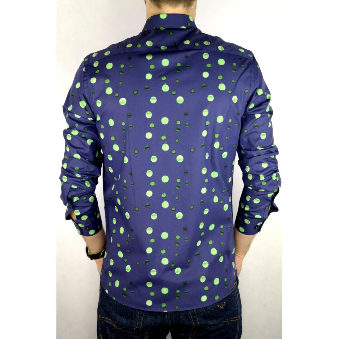 GIOVANNI PERA Koszula męska na stójce GPS42 kolorowa pieczątki podróże VISA