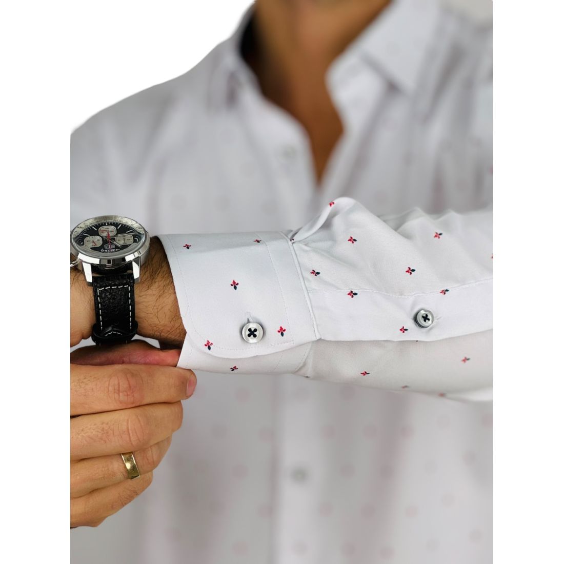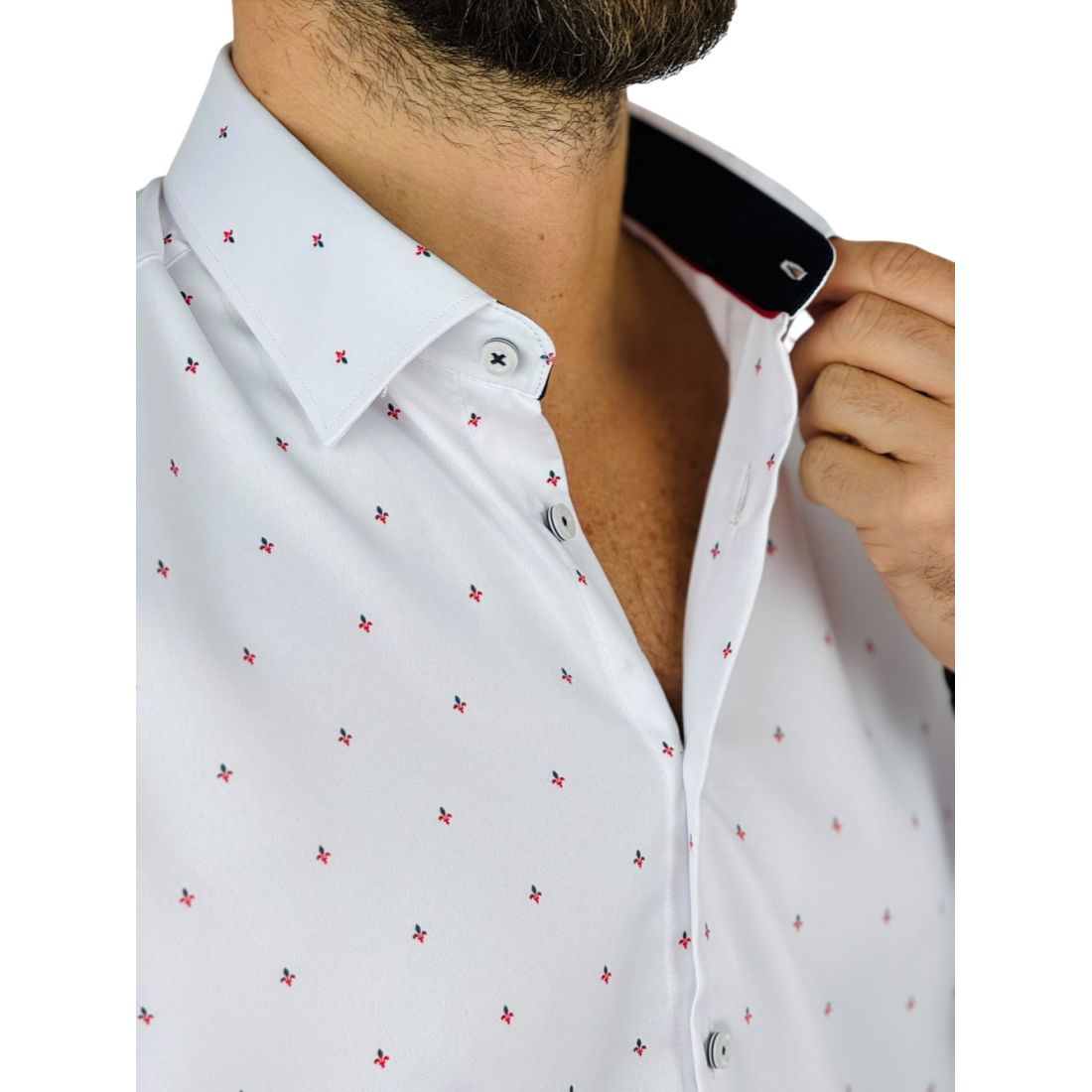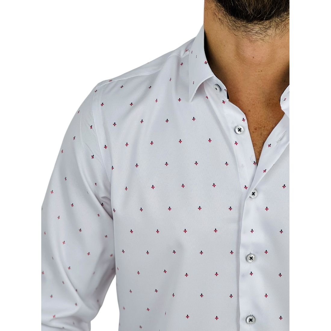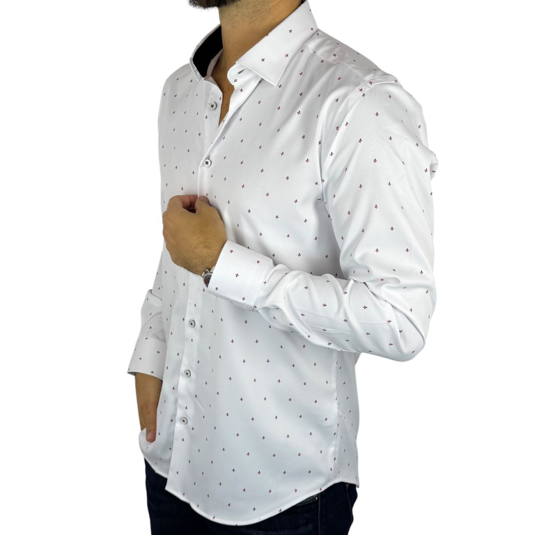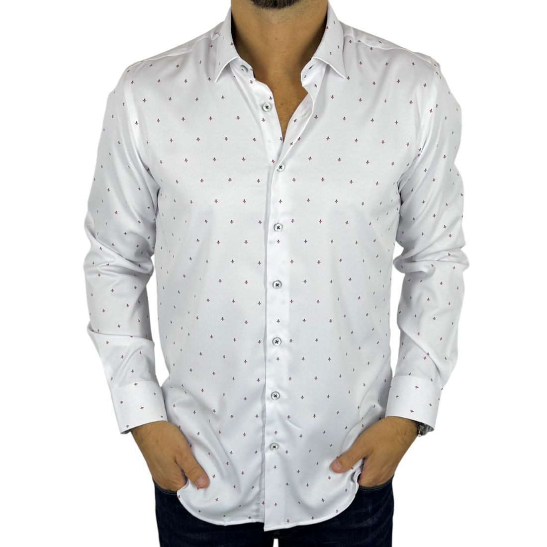 DANIEL BESSI Koszula męska fb185 biała, logowana, efekt jedwabiu | Sklep GriShop.eu | Koszule