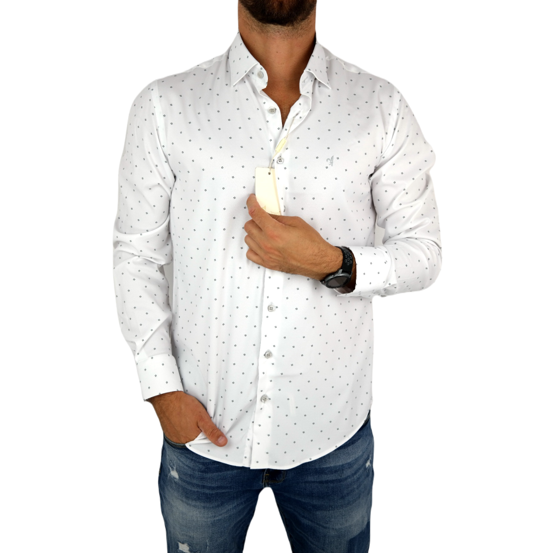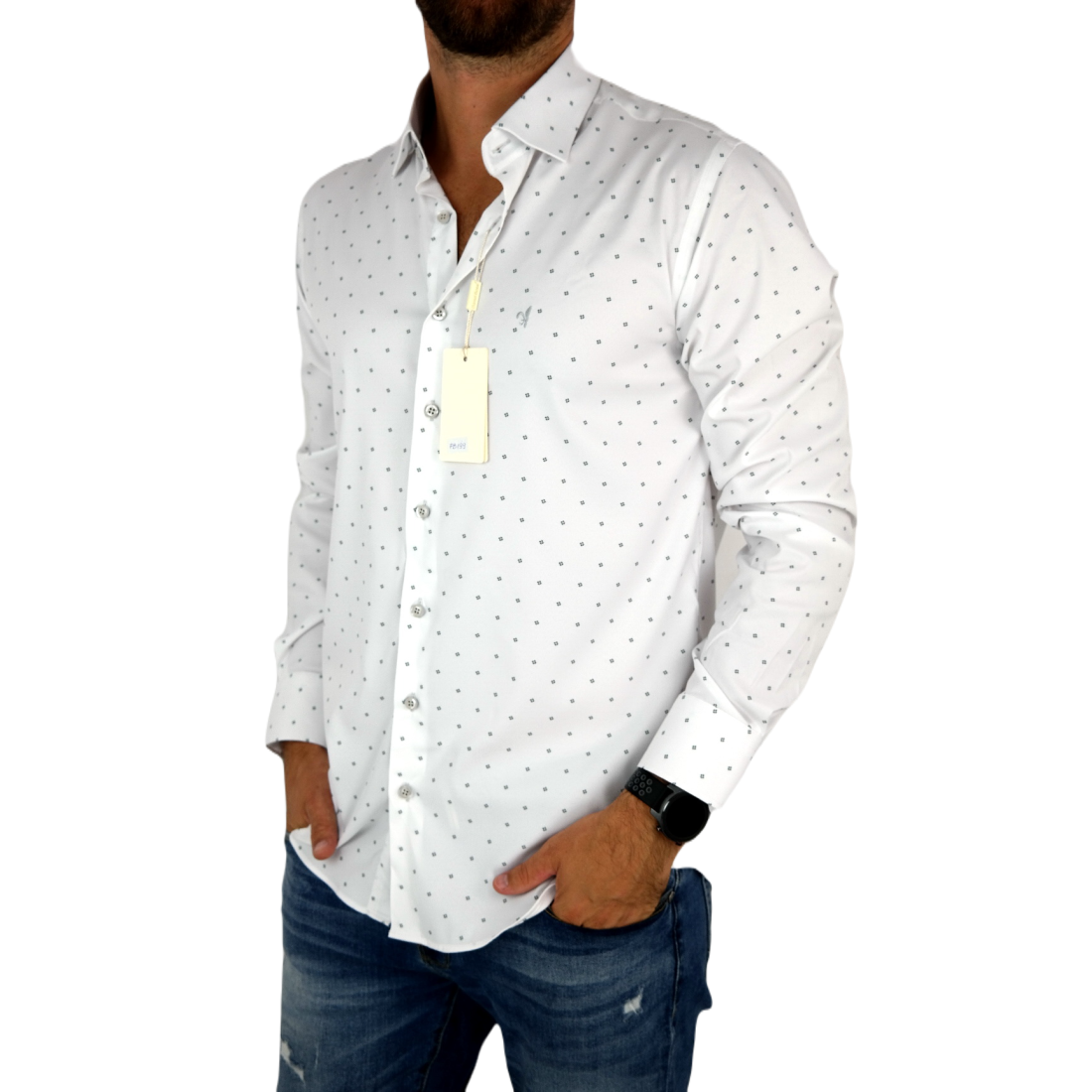 GUISEPPE LUIGI Koszula męska GL37 biała z efektownym kolorowym nadrukiem