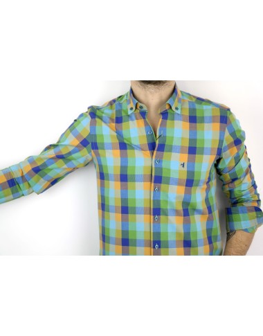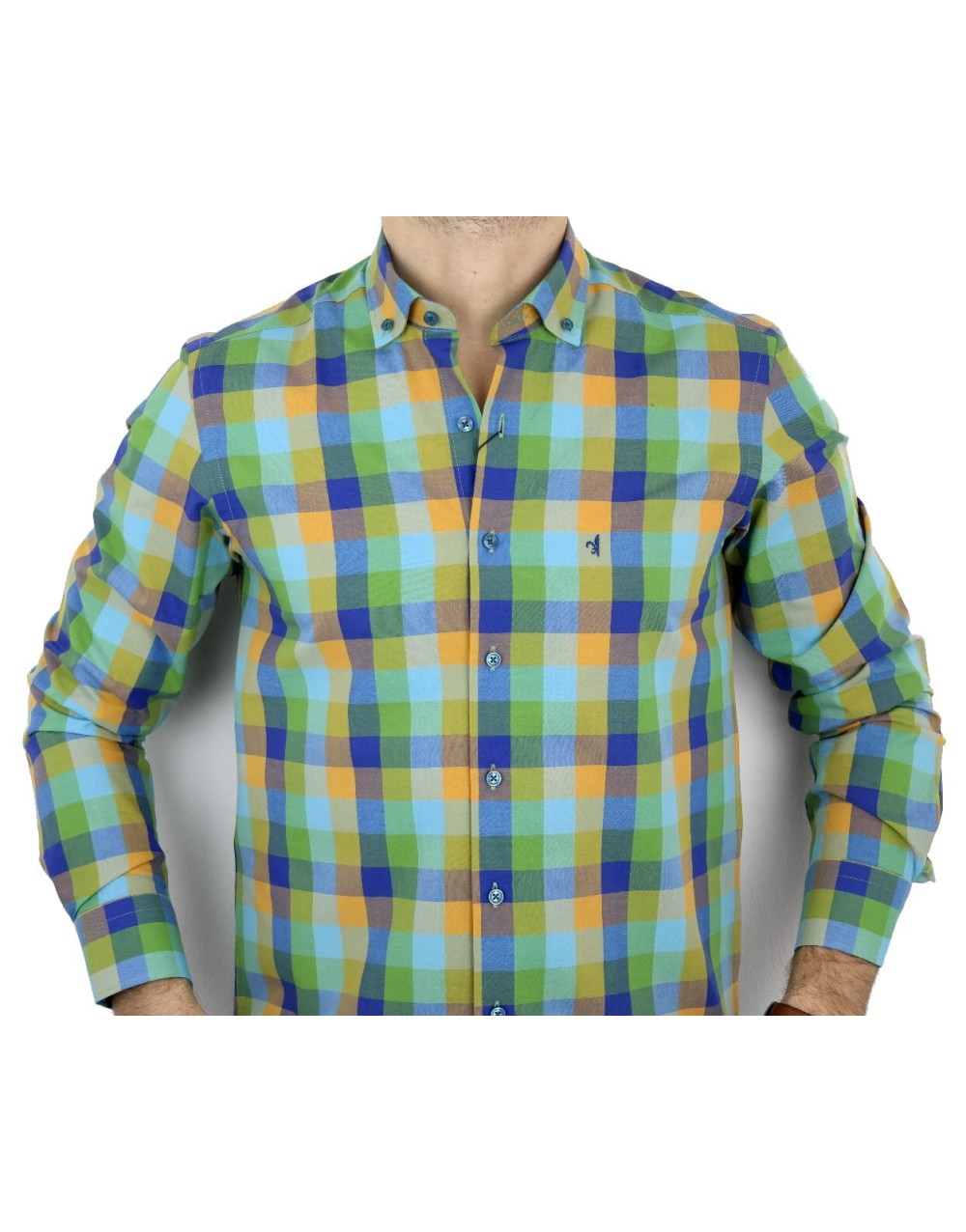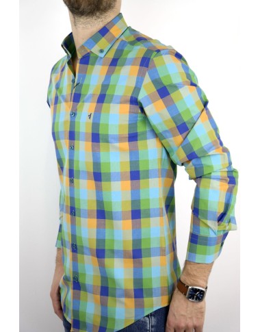 DANIEL BESSI Koszula męska fb232 kolorowa kratka, zielona