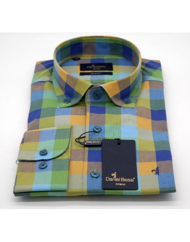 - DANIEL BESSI Koszula męska fb232 kolorowa kratka, zielona