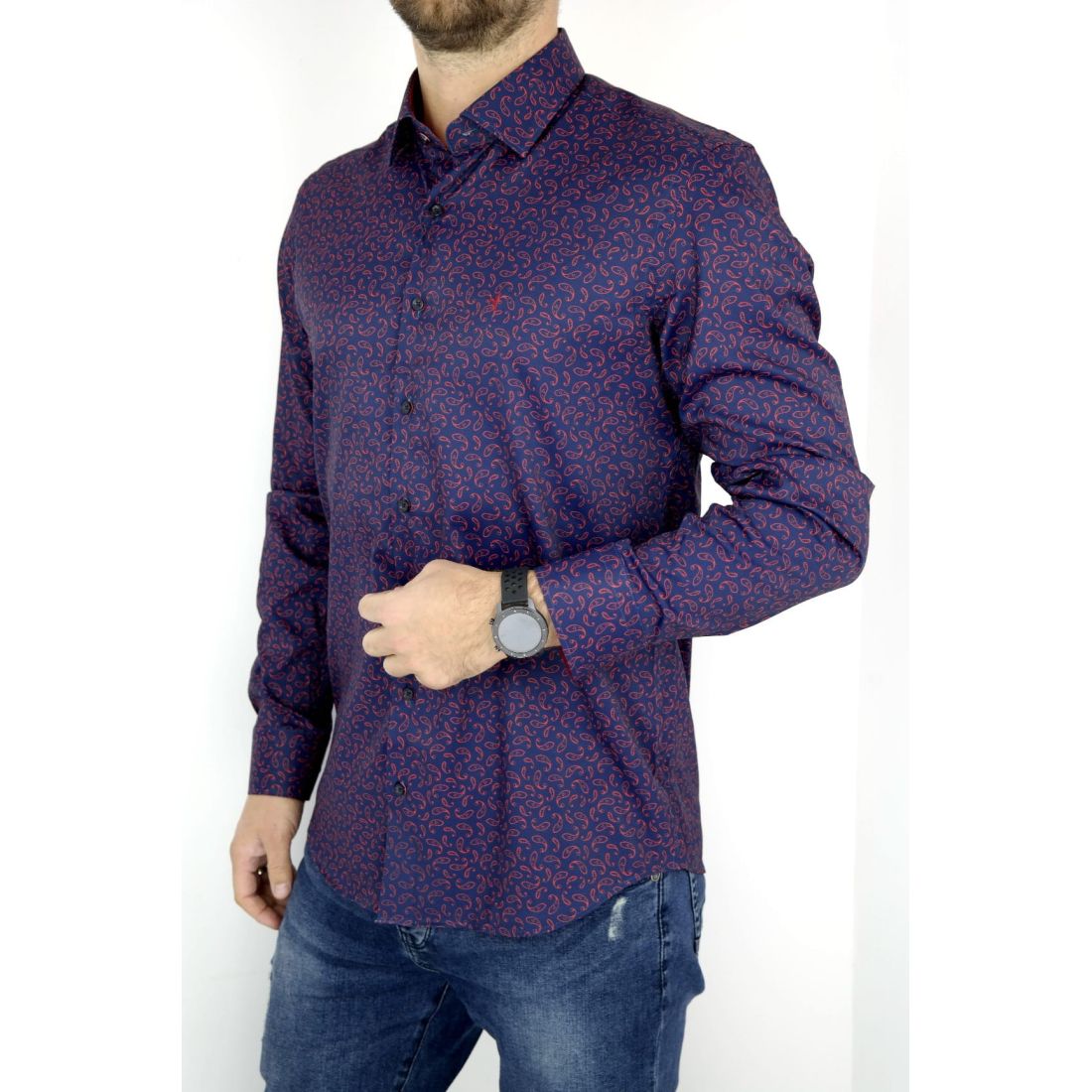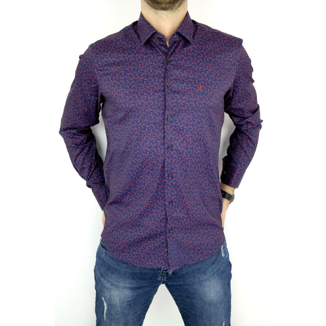 DANIEL BESSI Koszula męska fb605 ekskluzywna panterka kwiaty kolorowa