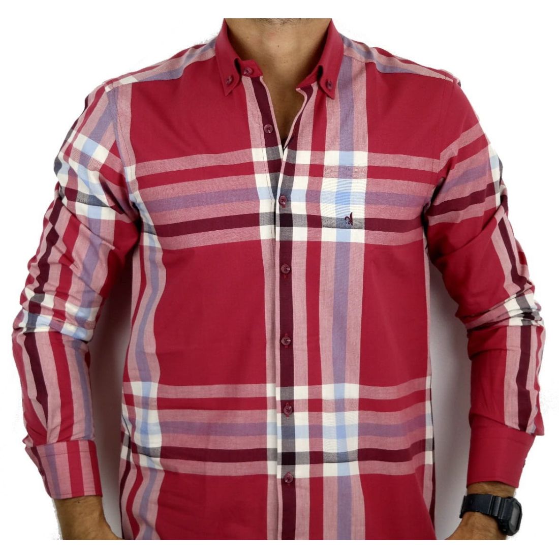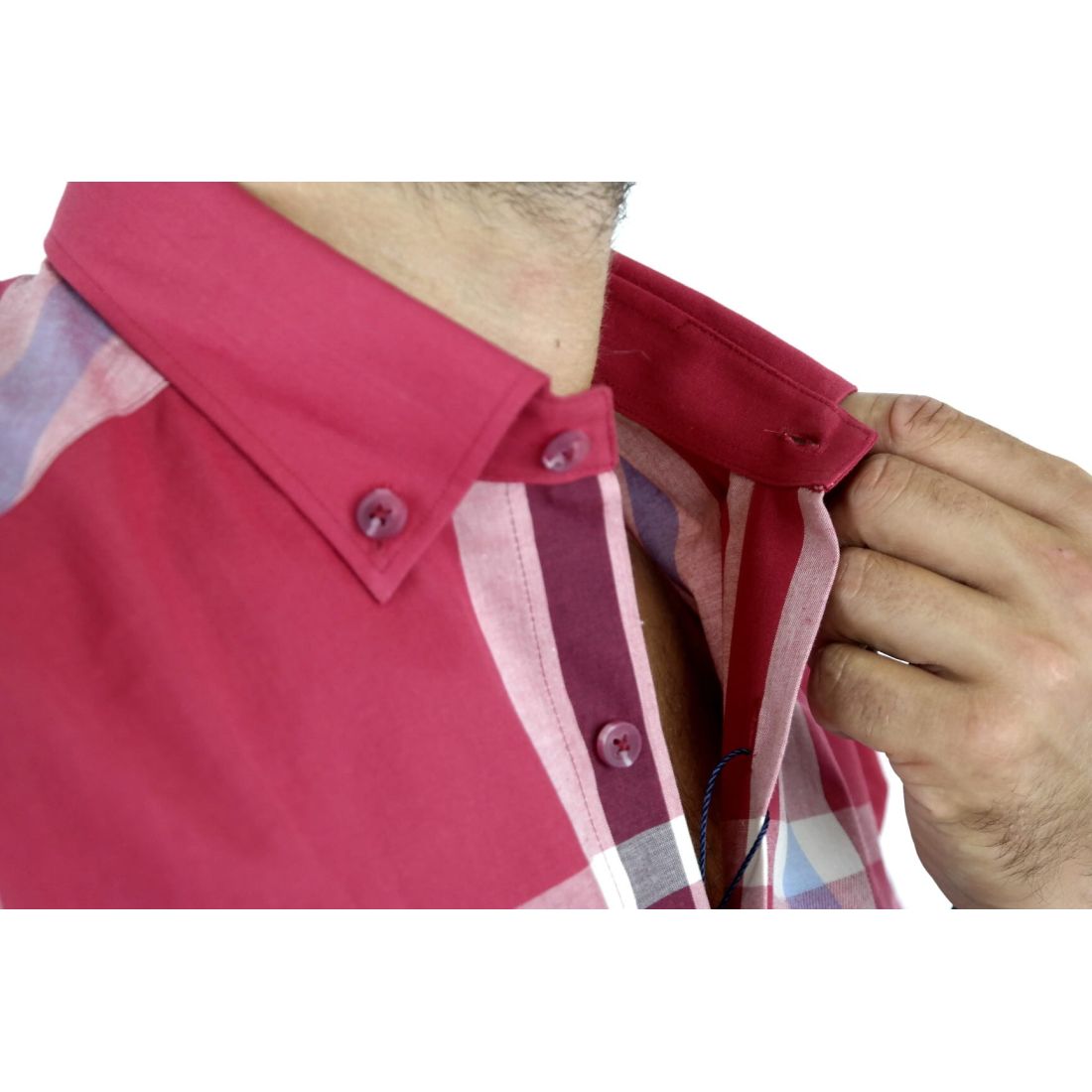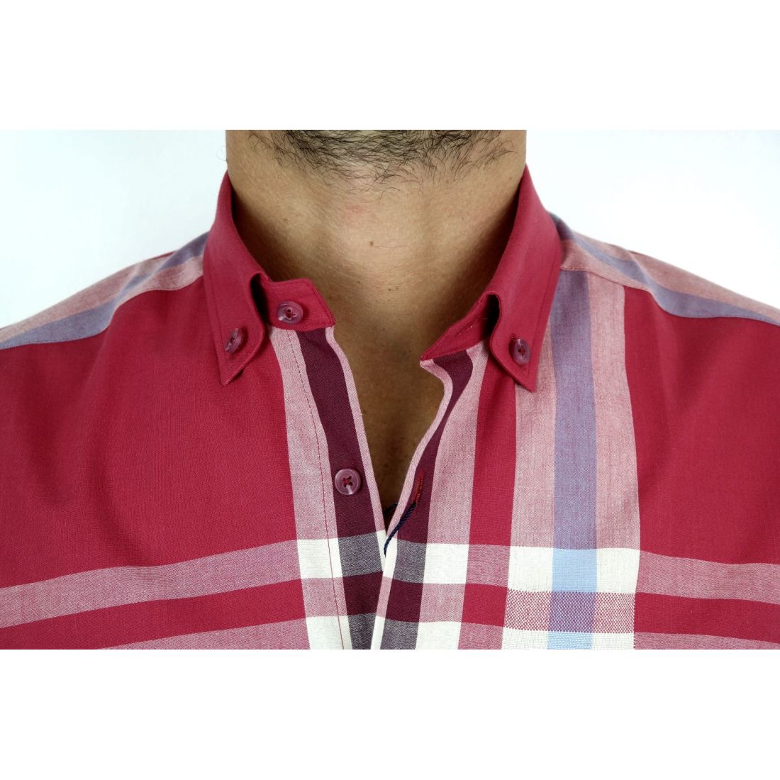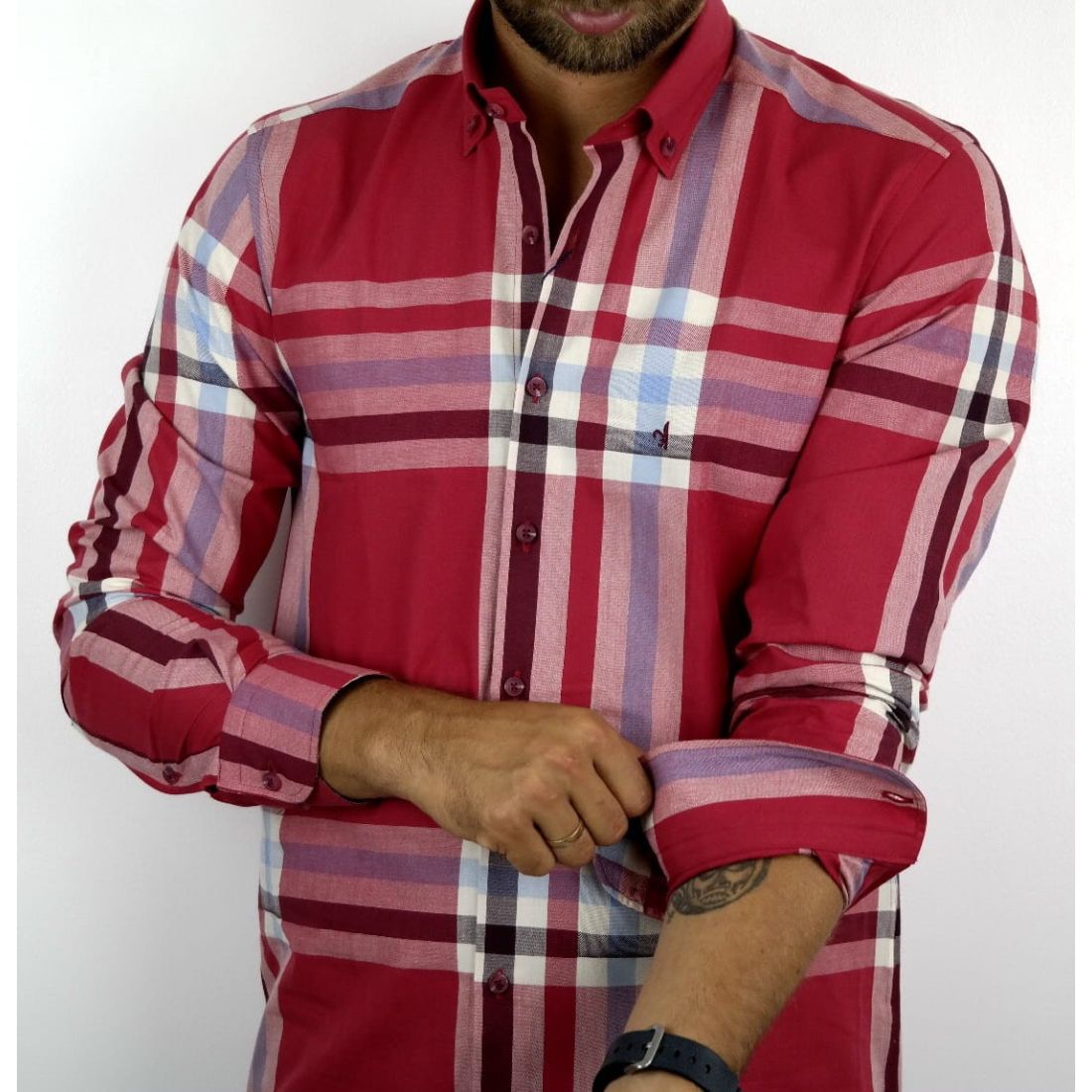 DANIEL BESSI Koszula męska fb333 czerwona, krata