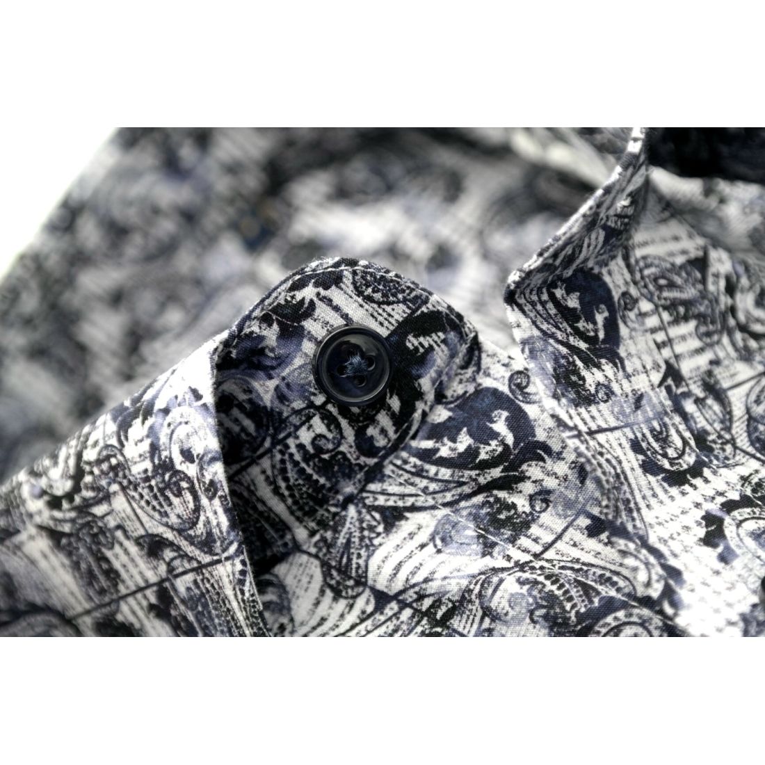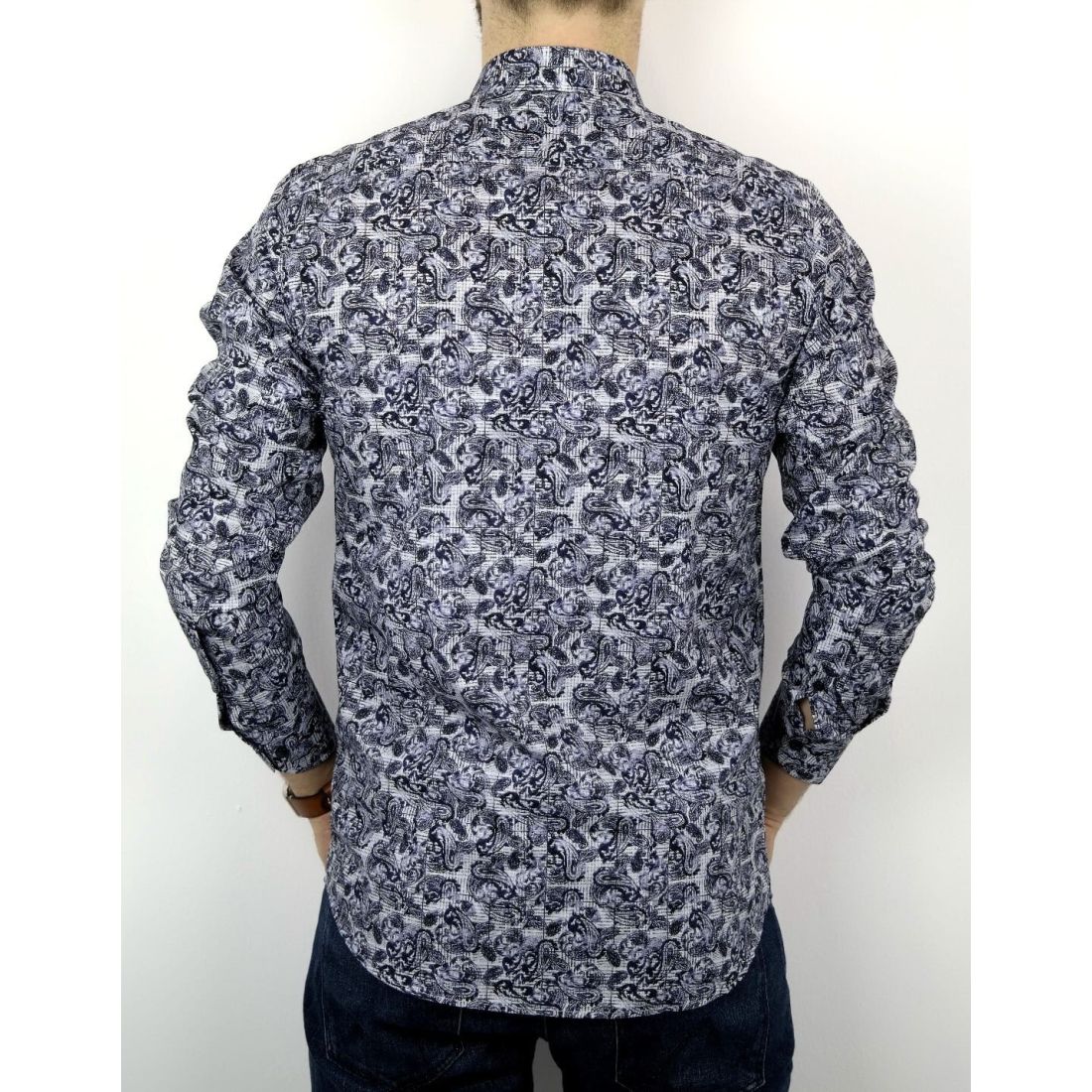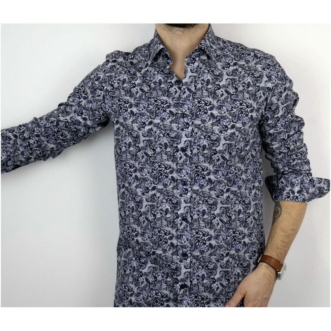 DANIEL BESSI Koszula męska fb339 granatowa, niebieska, kratka, liście | Sklep GriShop.eu | Koszule
