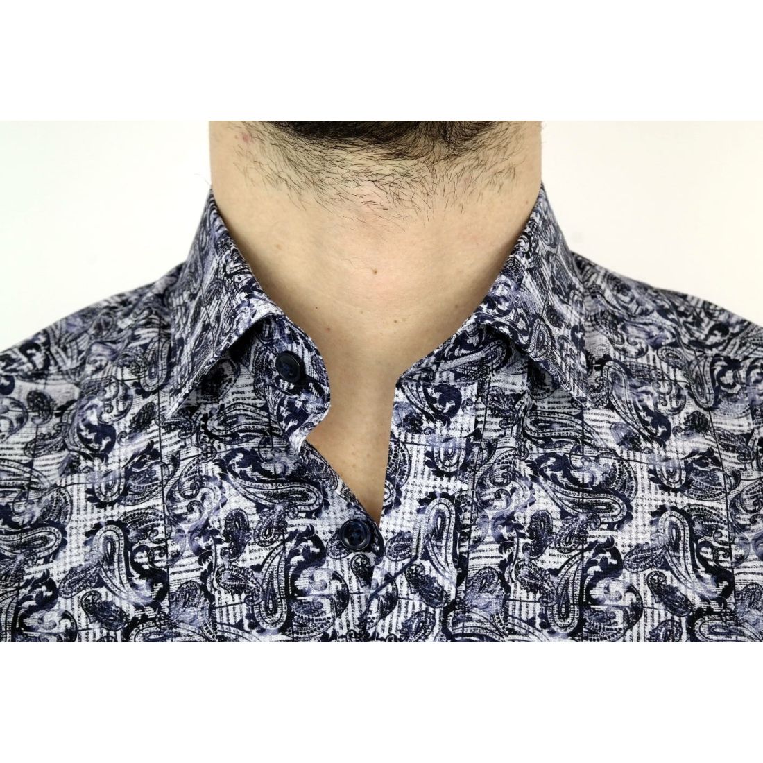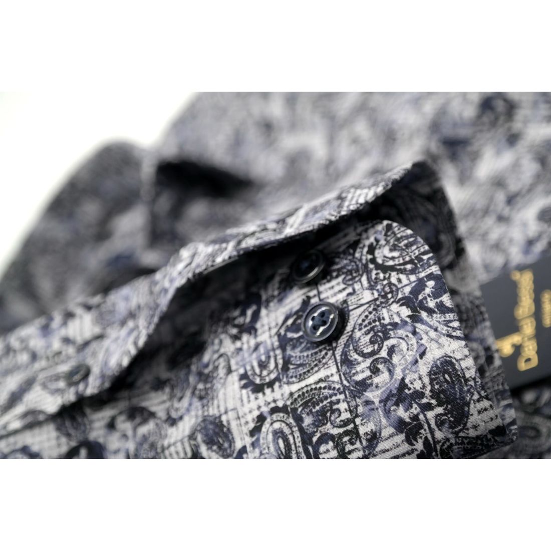 DANIEL BESSI Koszula męska fb339 granatowa, niebieska, kratka, liście