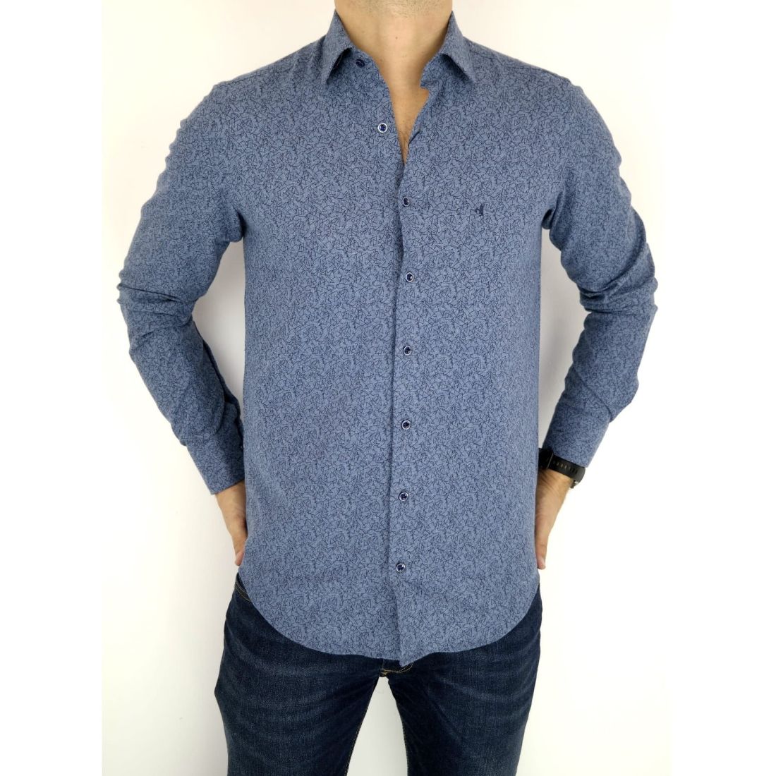 GUISEPPE LUIGI Koszula męska GL35 biała z efektownym czarnym nadrukiem, lew