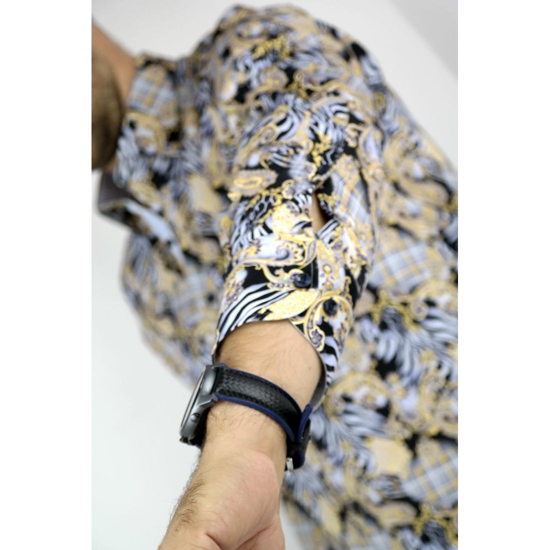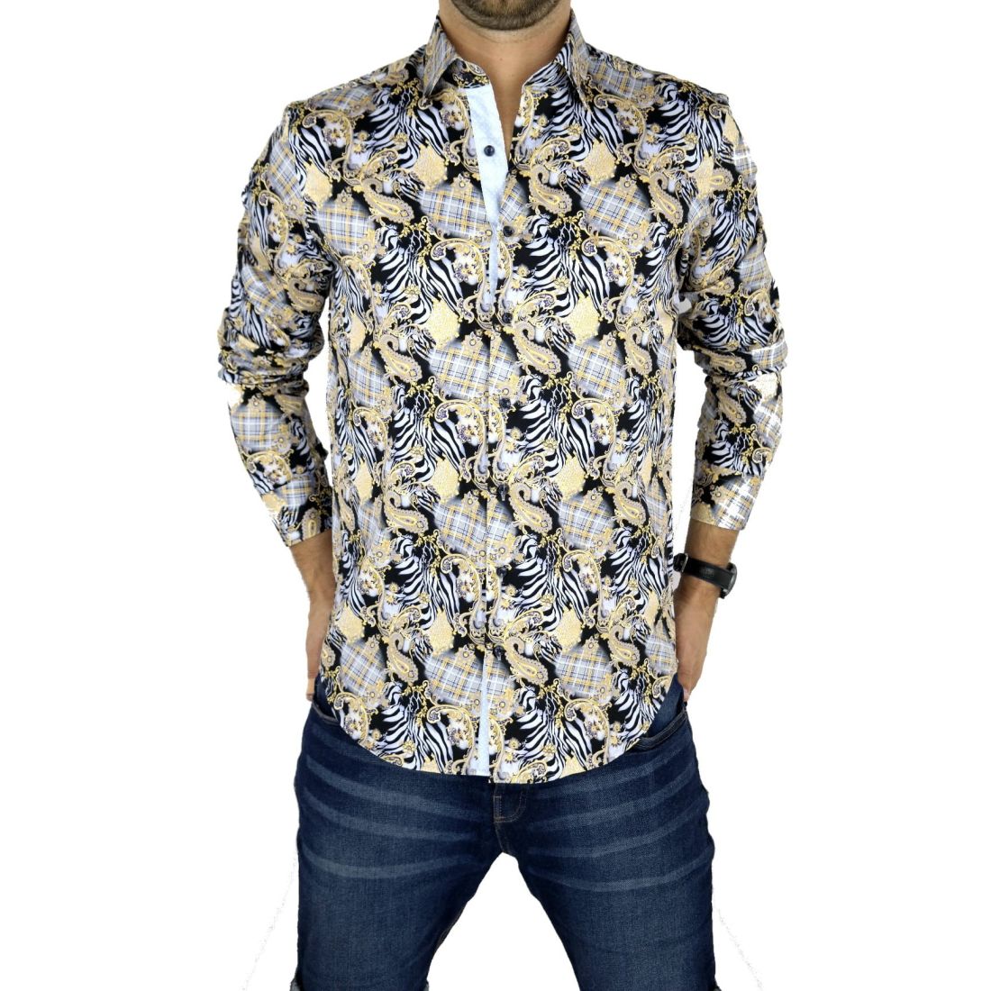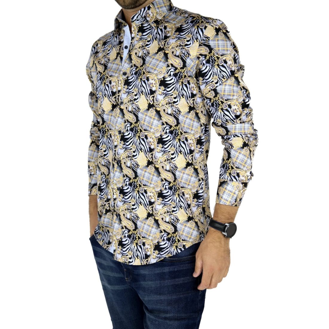 DANIEL BESSI Koszula męska fb116 biała w kolorowe pióra, niepowtarzalna