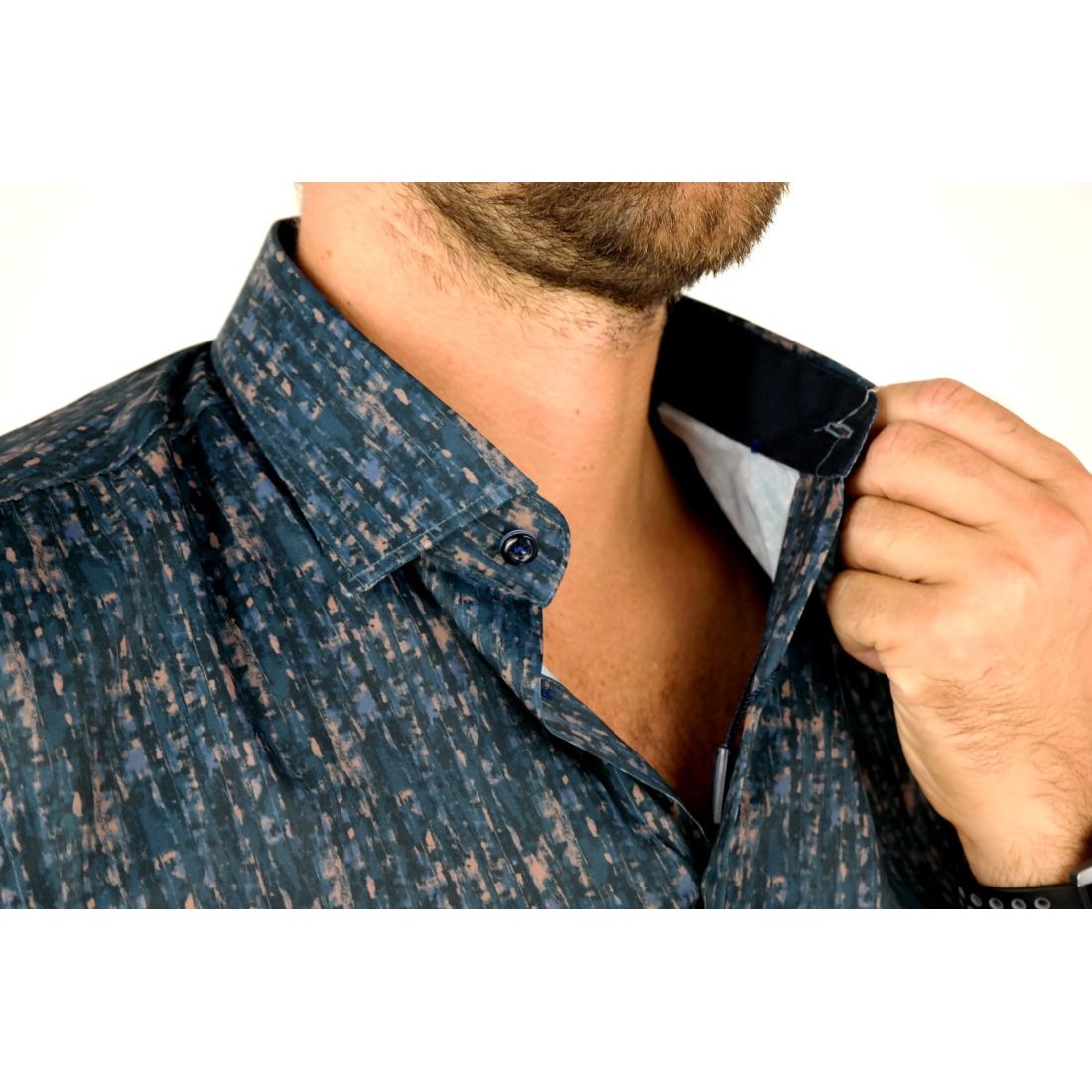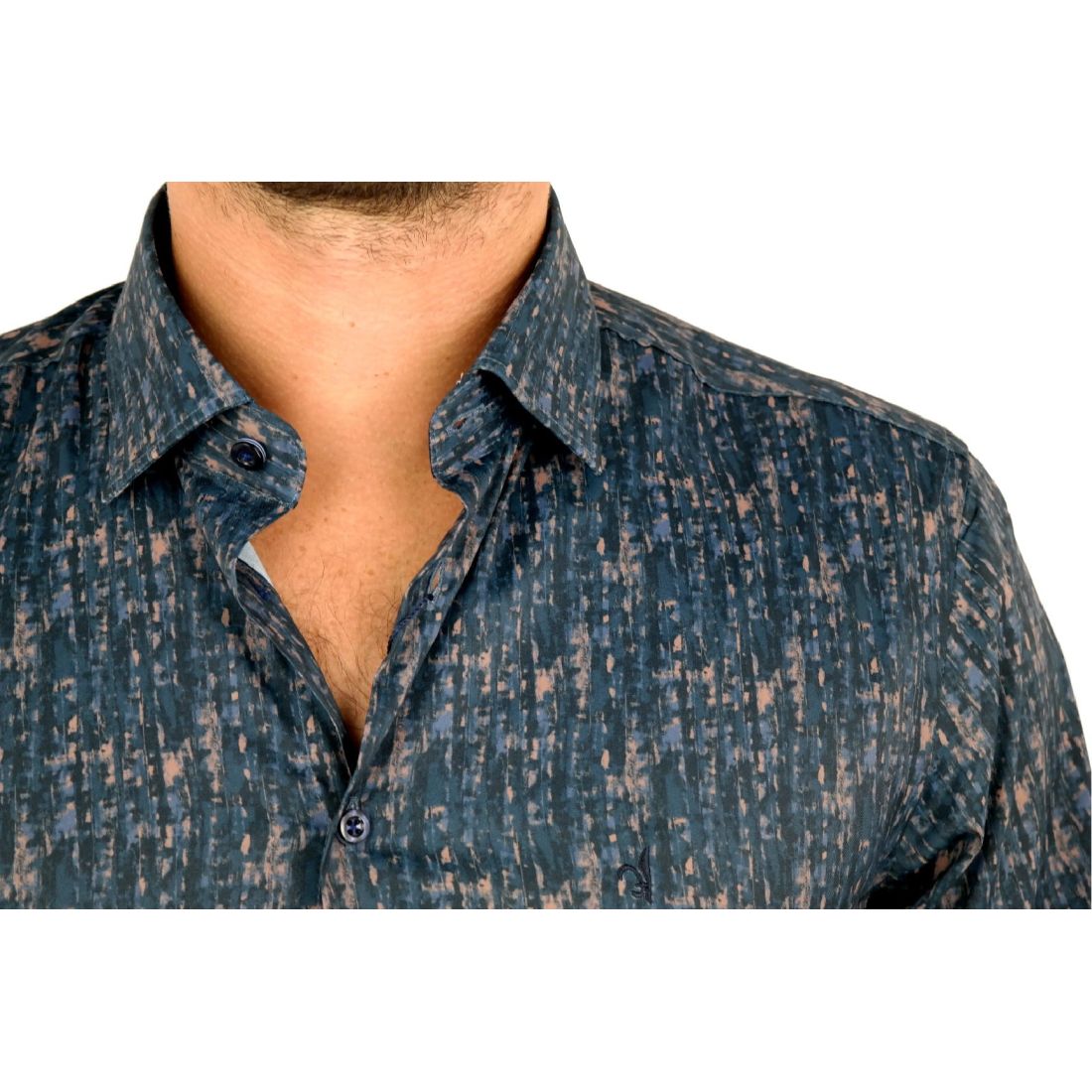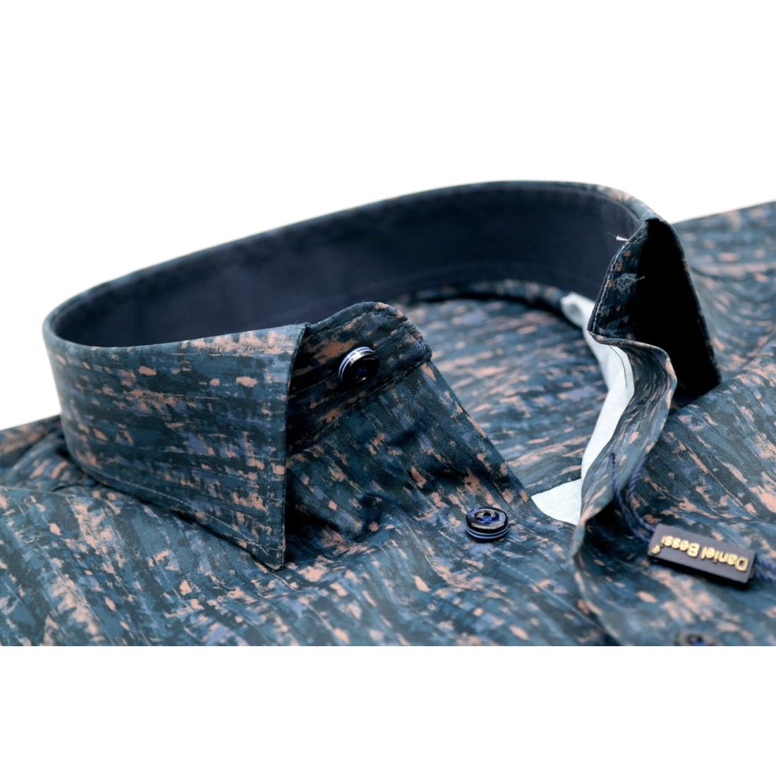 DANIEL BESSI Koszula męska fb551 granat brąz, efekt jedwabiu