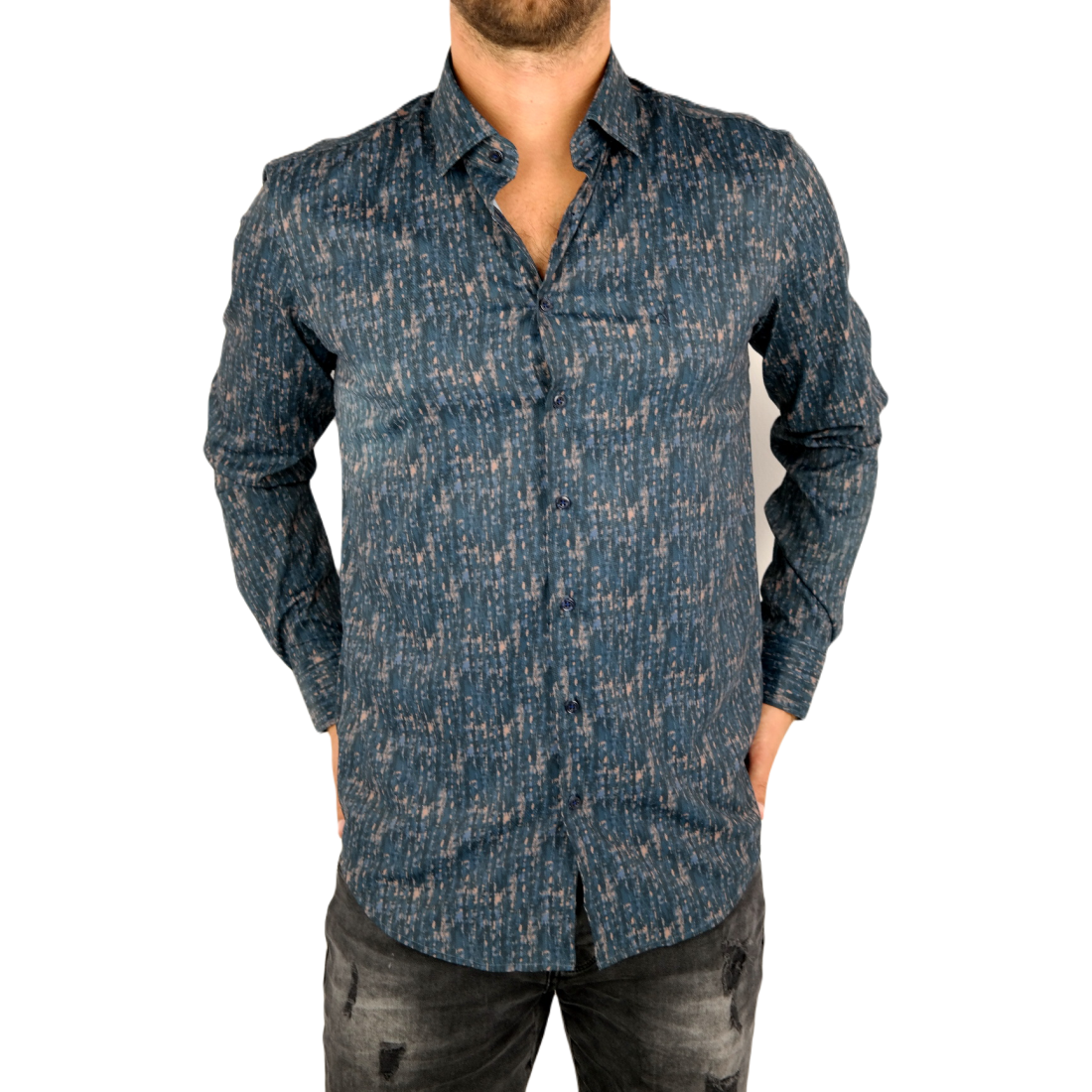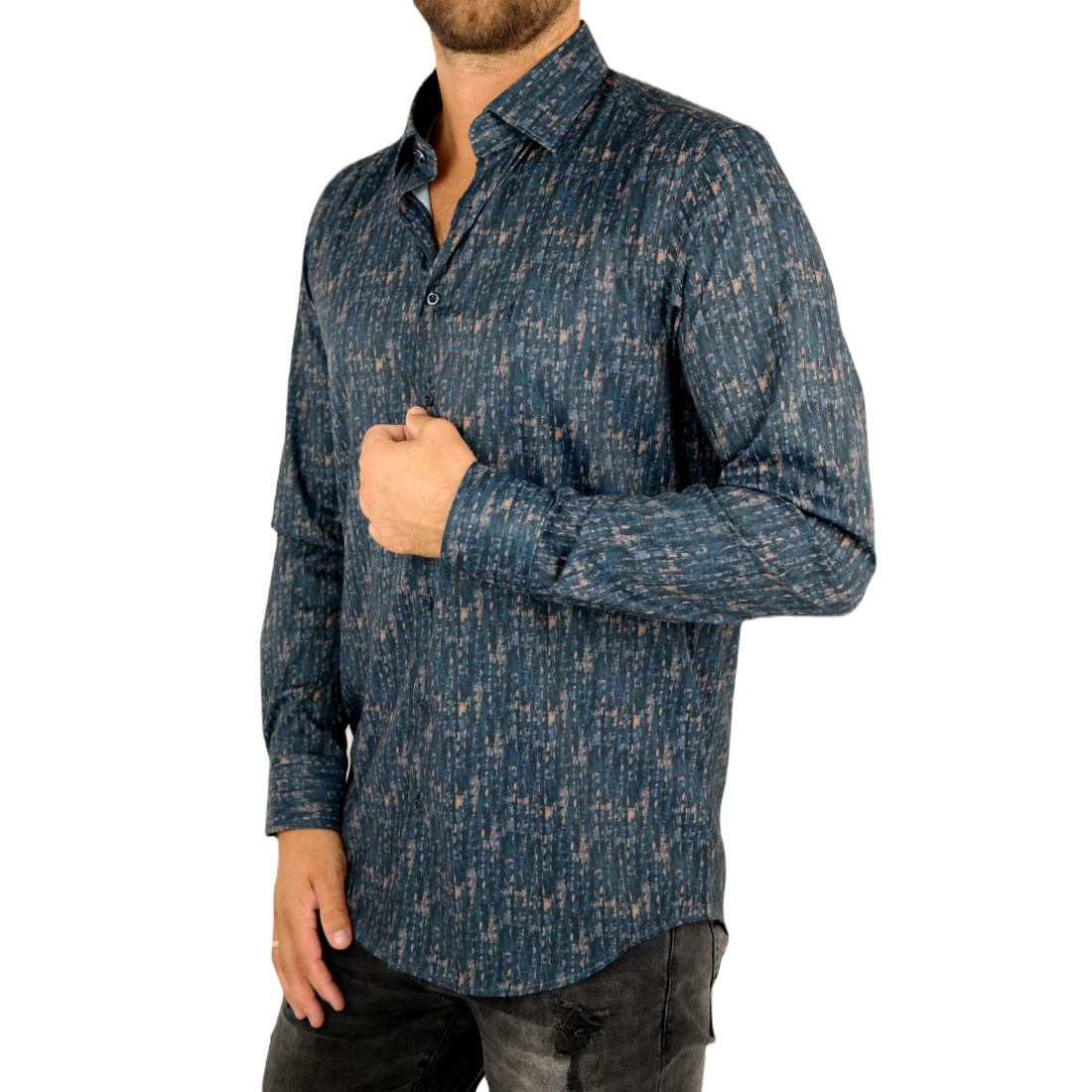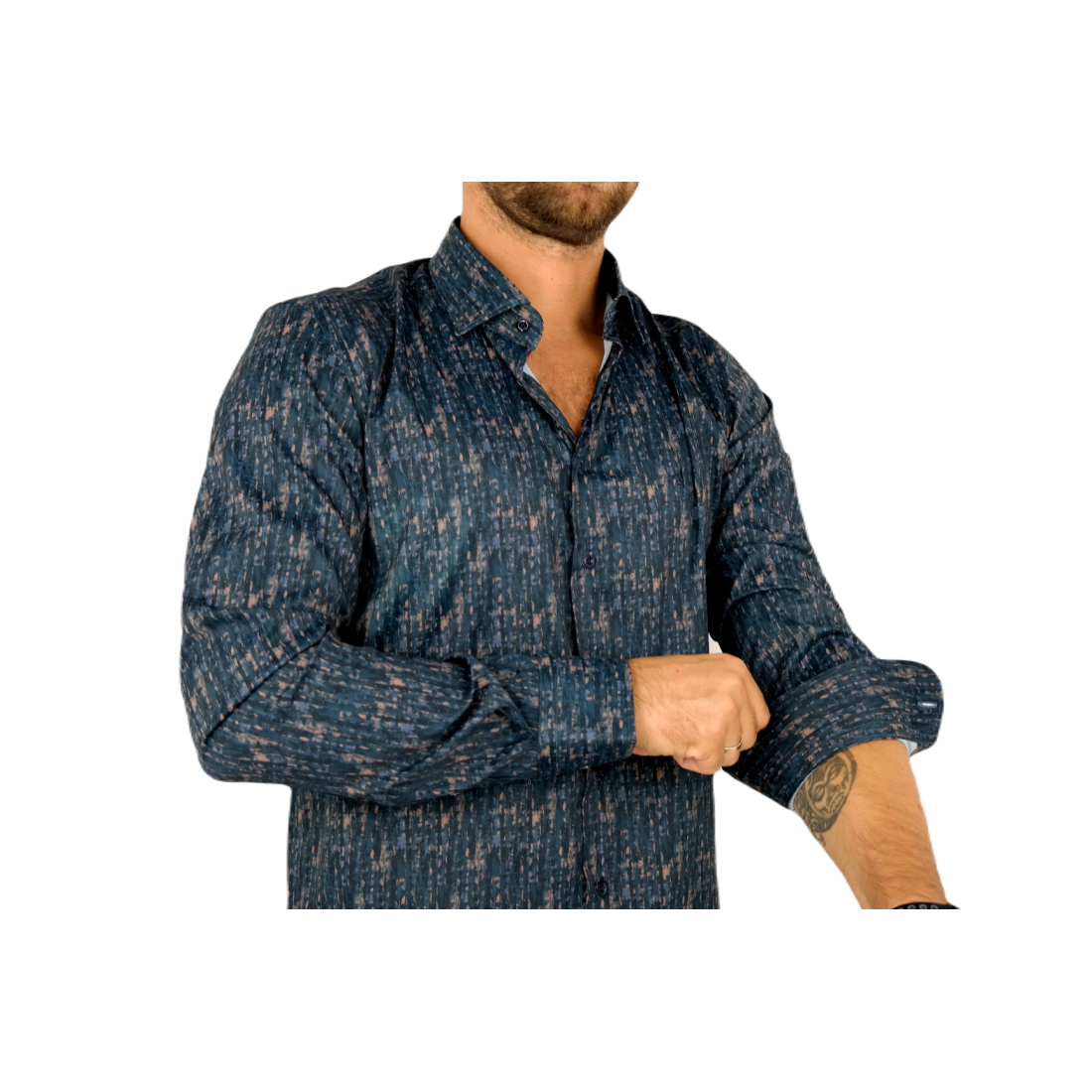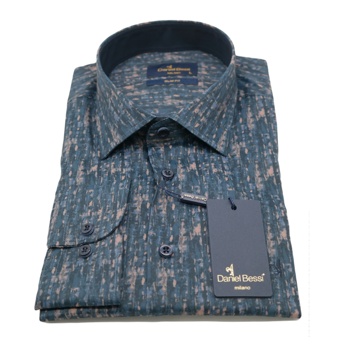DANIEL BESSI Koszula męska fb551 granat brąz, efekt jedwabiu