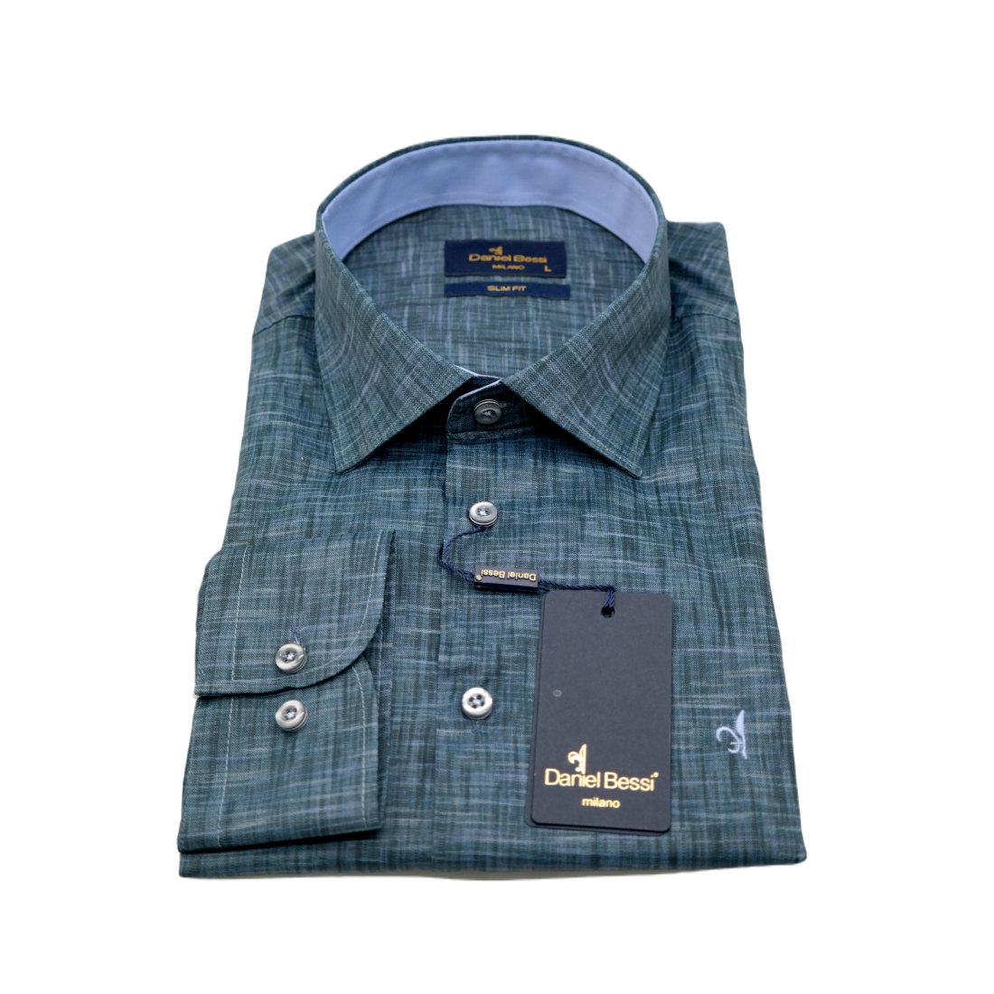 DANIEL BESSI Koszula męska fb564 zielona wzór, efekt jedwabiu | Sklep GriShop.eu | Koszule