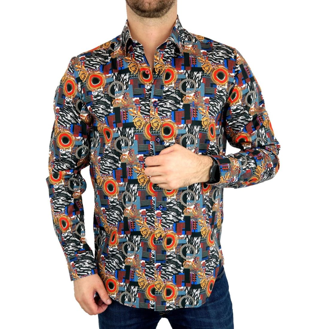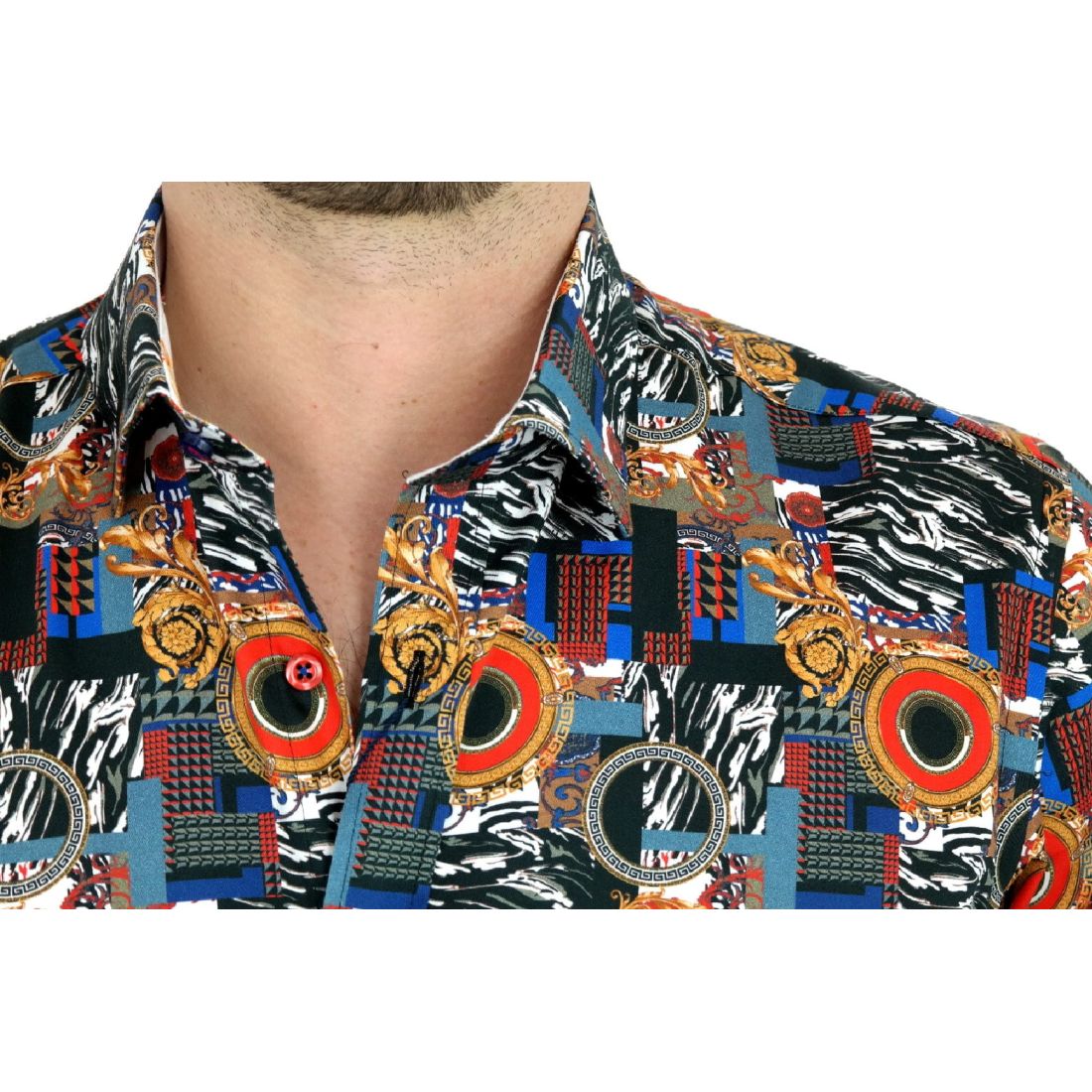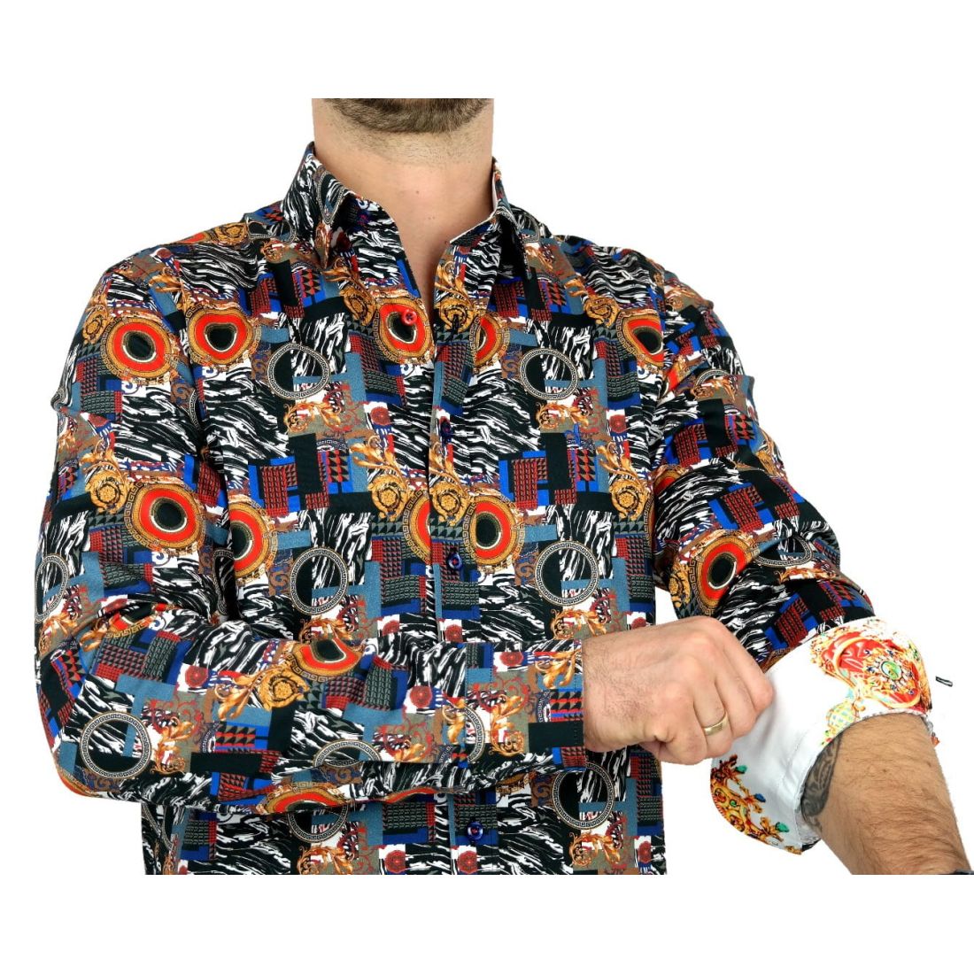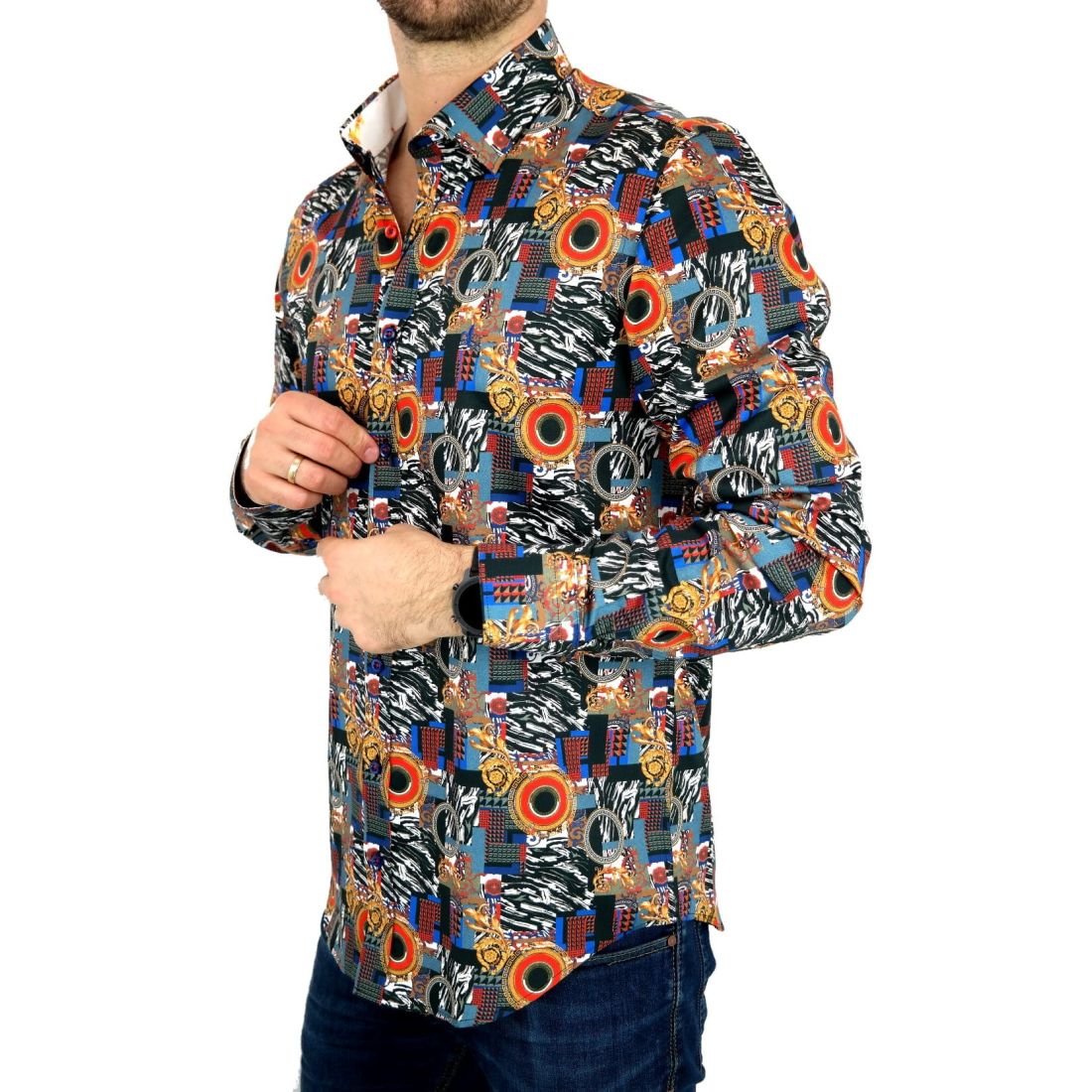 DANIEL BESSI Koszula męska fb601 kolorowa ekskluzywna zebra złoto