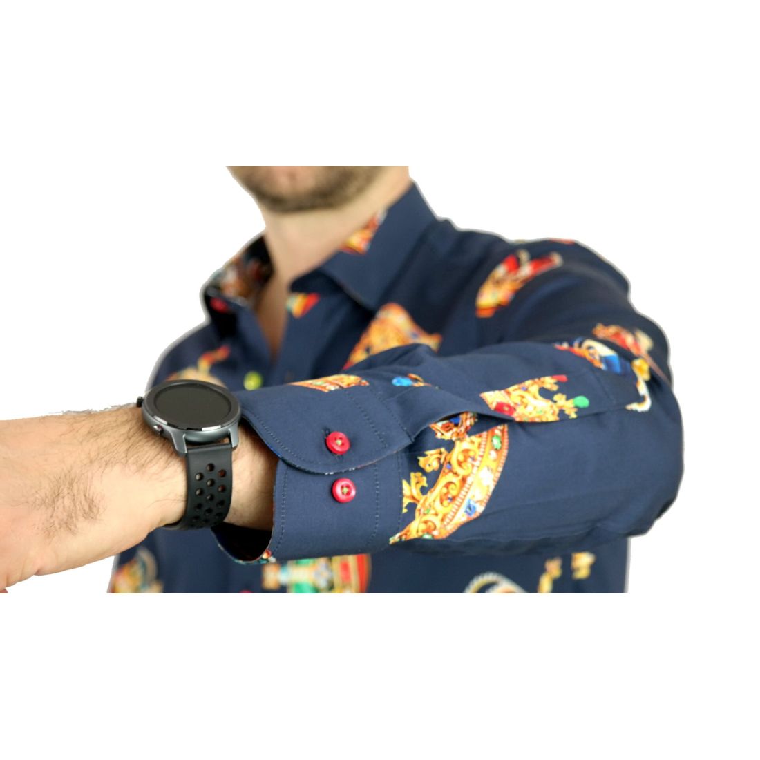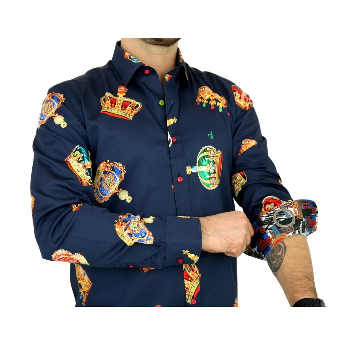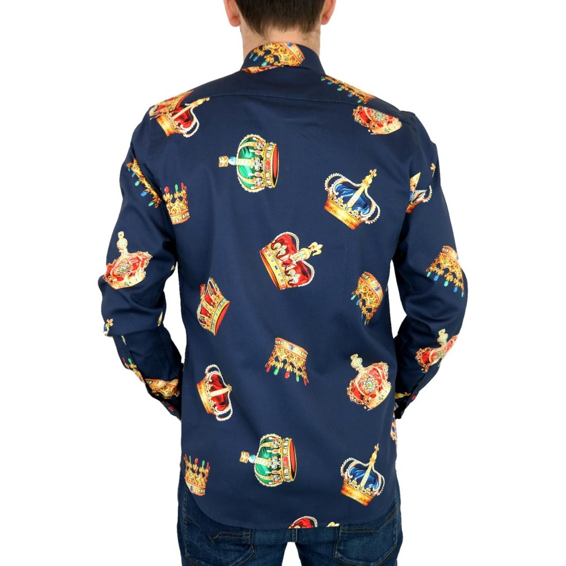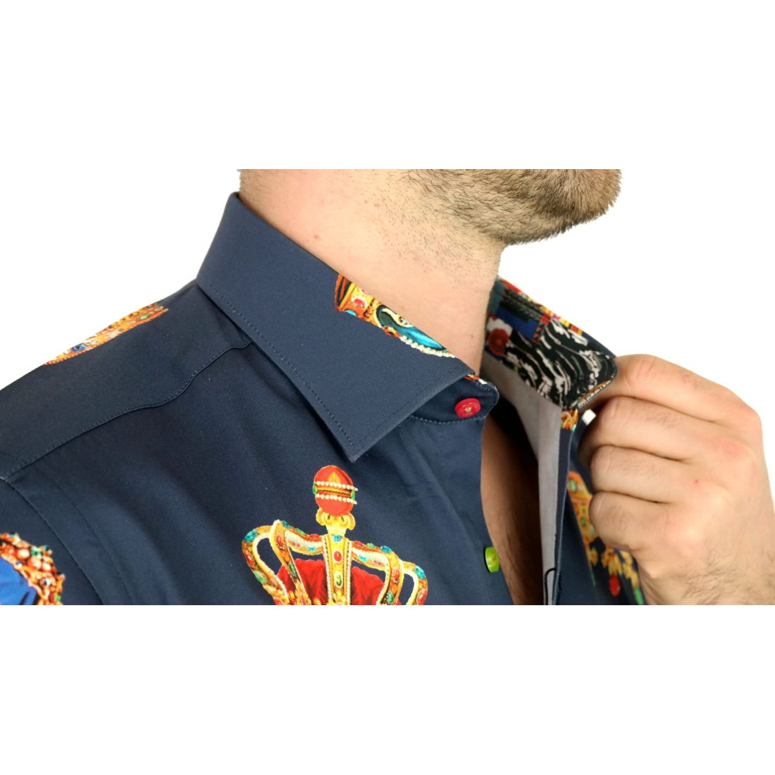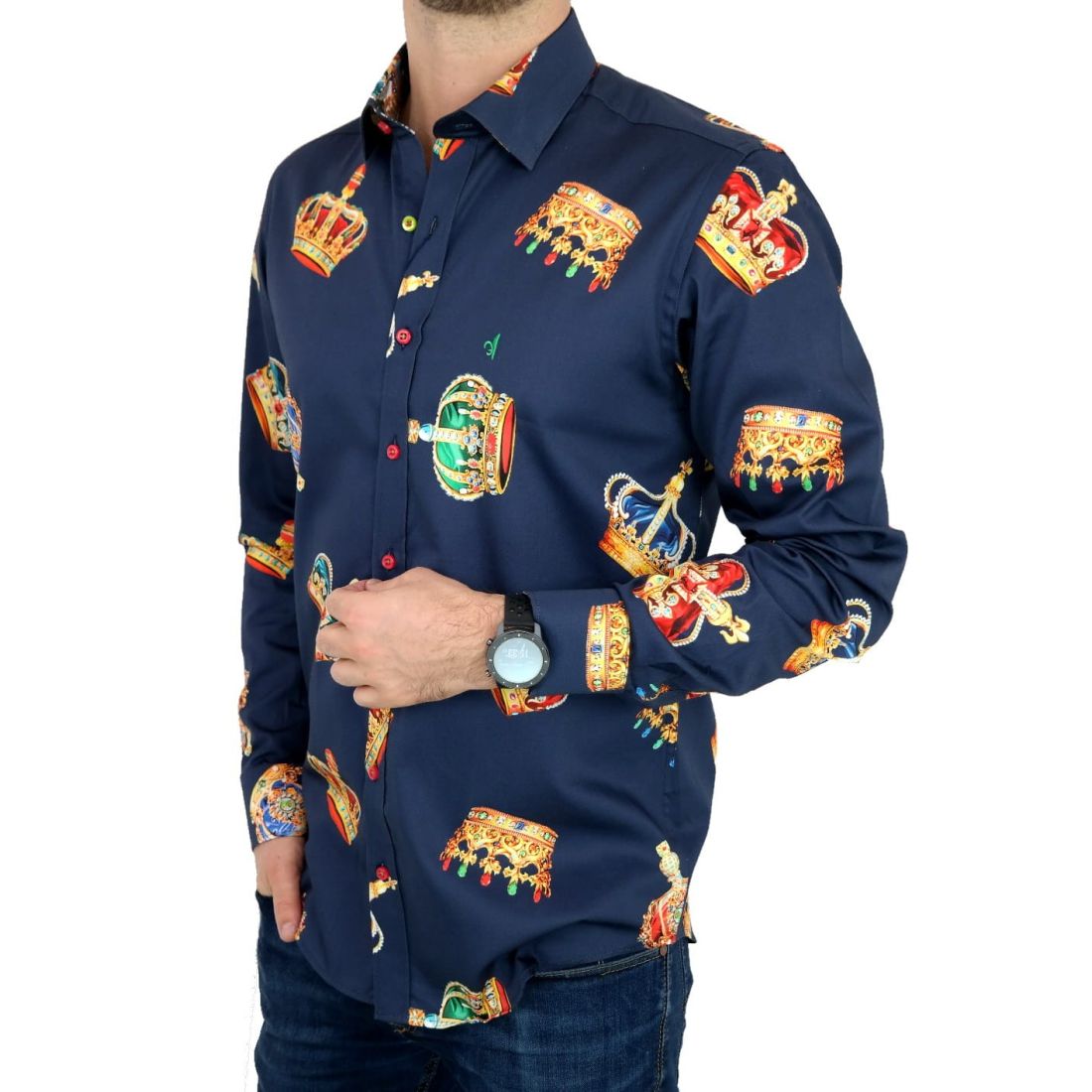 DANIEL BESSI Koszula męska fb603 granatowa korona król kolorowa | Sklep GriShop.eu | Koszule