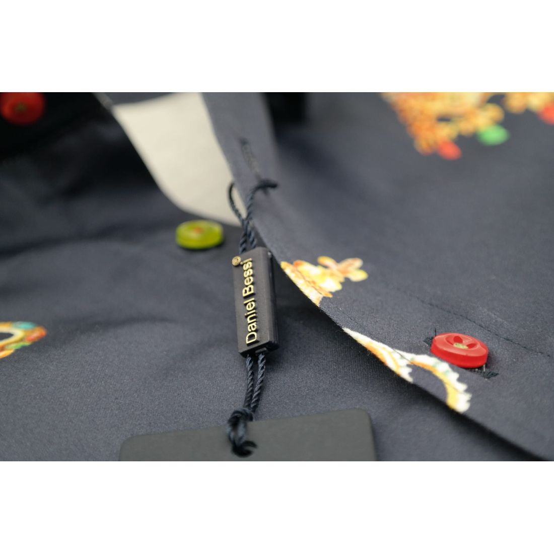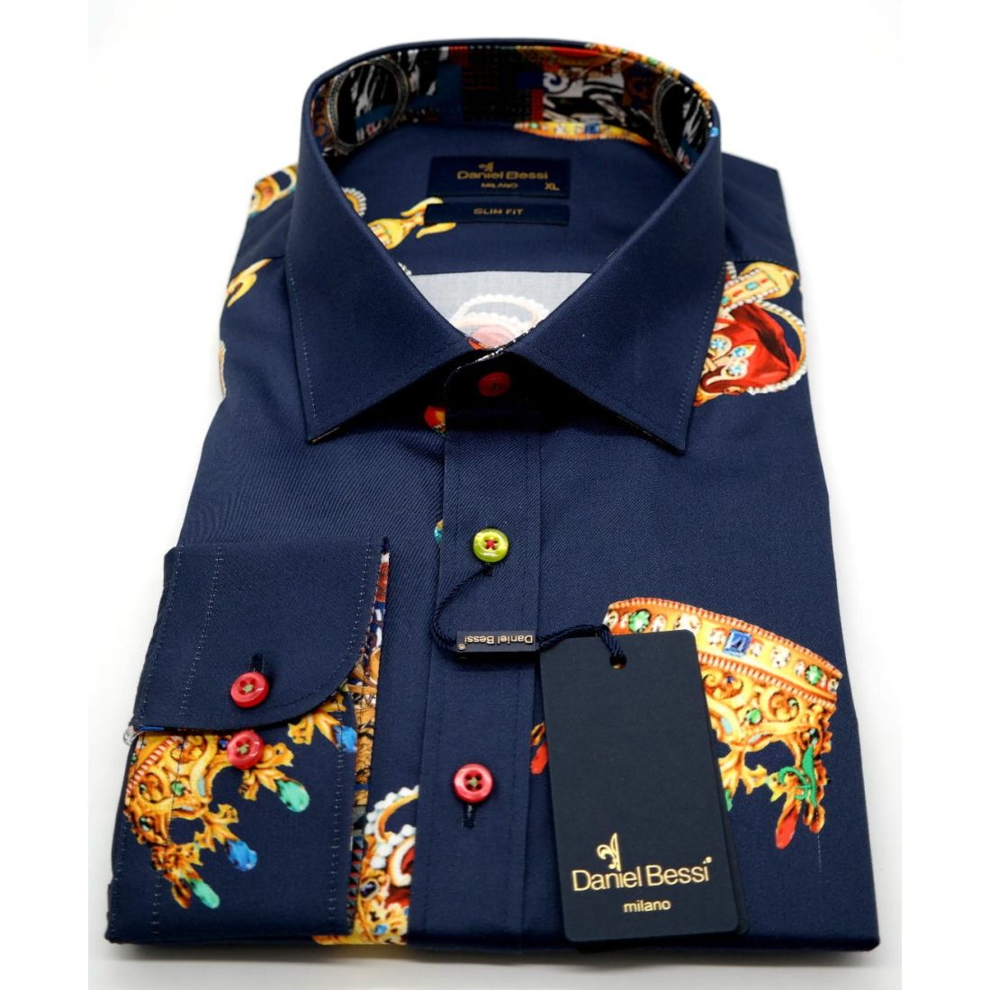 DANIEL BESSI Koszula męska fb603 granatowa korona król kolorowa