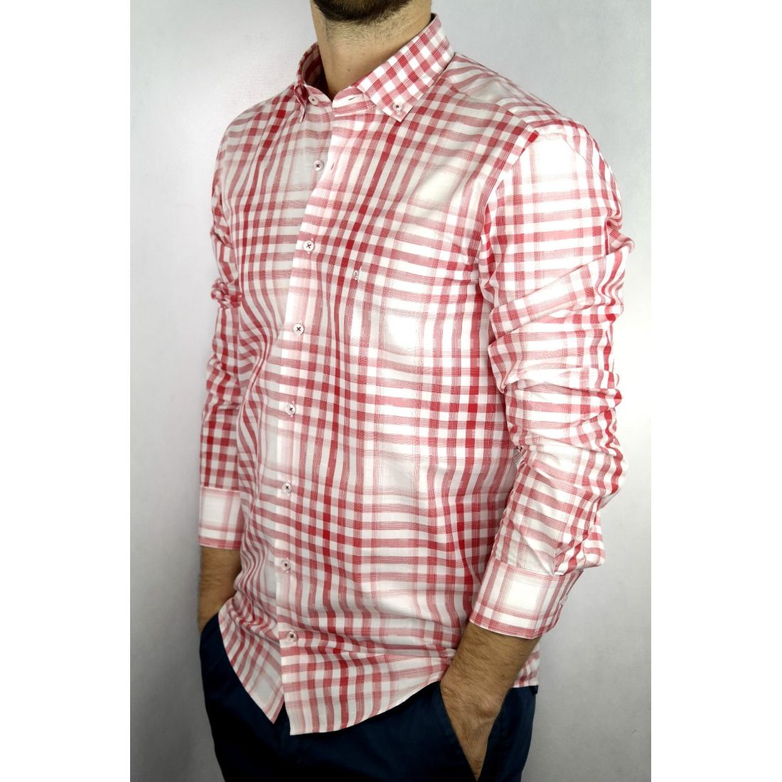 DANIEL BESSI Koszula męska fb741 czerwona krata