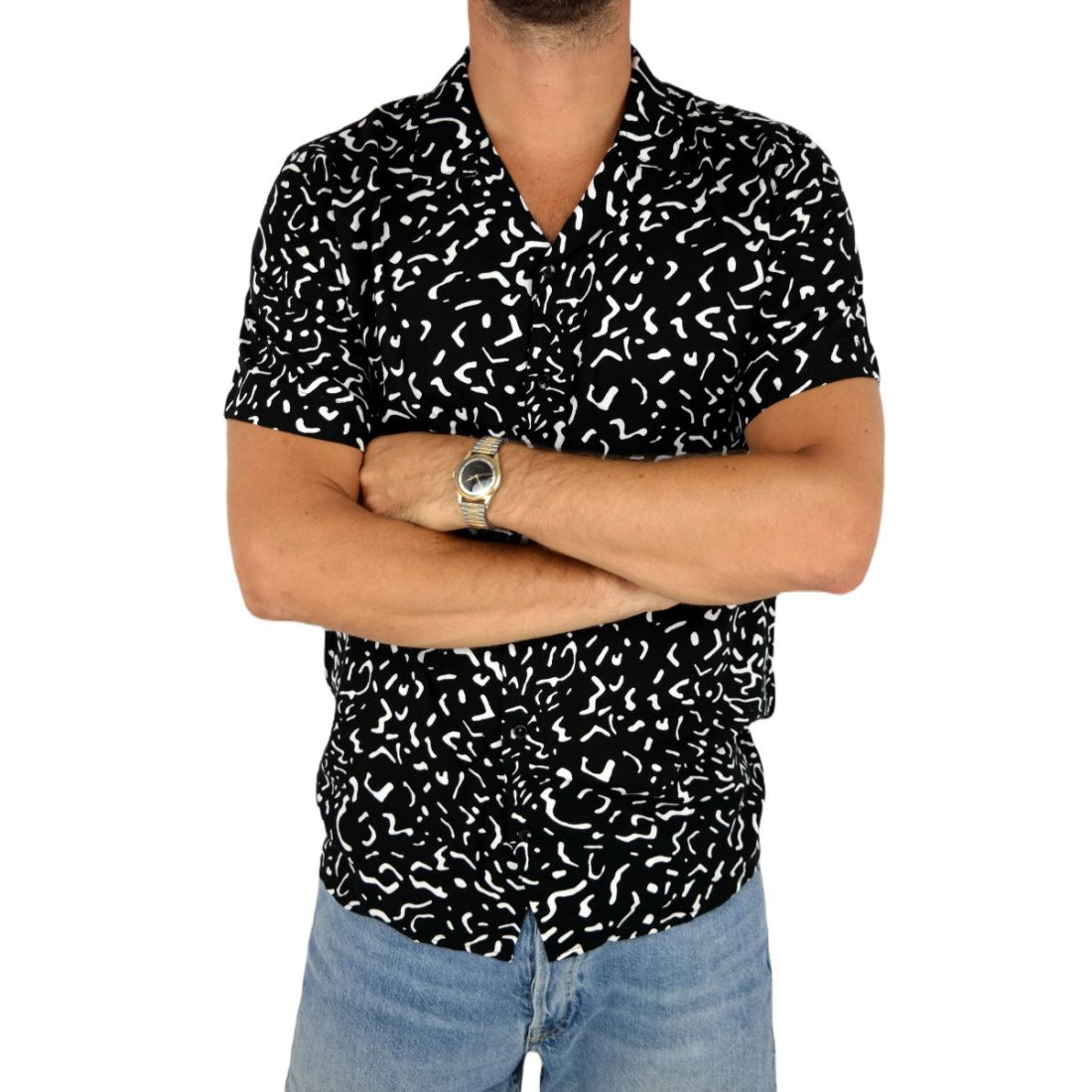 DIGS Koszula męska, krótki rękaw KD4 czarna w biały wzór