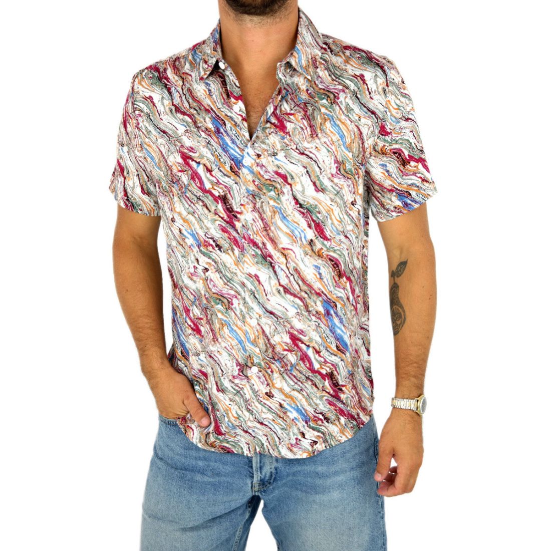 FRILIVIN Koszula męska, krótki rękaw KF19 kolorowa w maziaje