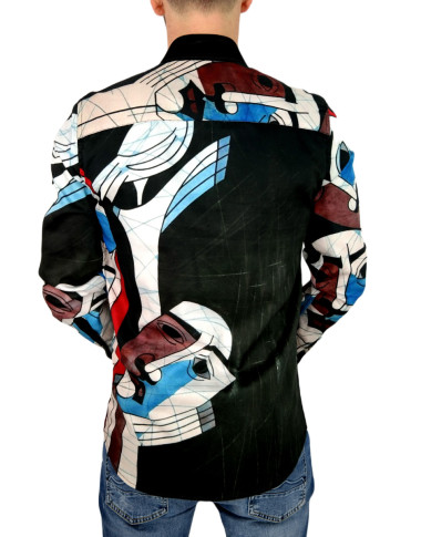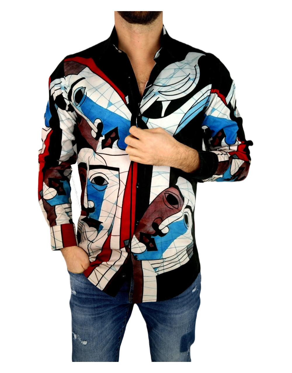GIOVANNI PERA Koszula męska GP305 kolorowa, twarze