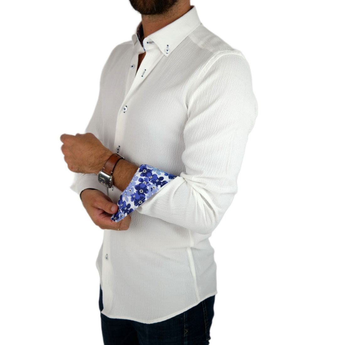 Odkryj niezrównaną koszulę męską, której kunszt i różnorodność kolorystyczna robią wrażenie. Ten włoski projekt jest prawdziwym hitem dzięki swej doskonałej jakości oraz wyjątkowemu designowi, którym rządzą delikatne, kolorowe wykończenia przy kołnierzyku i mankietach.
