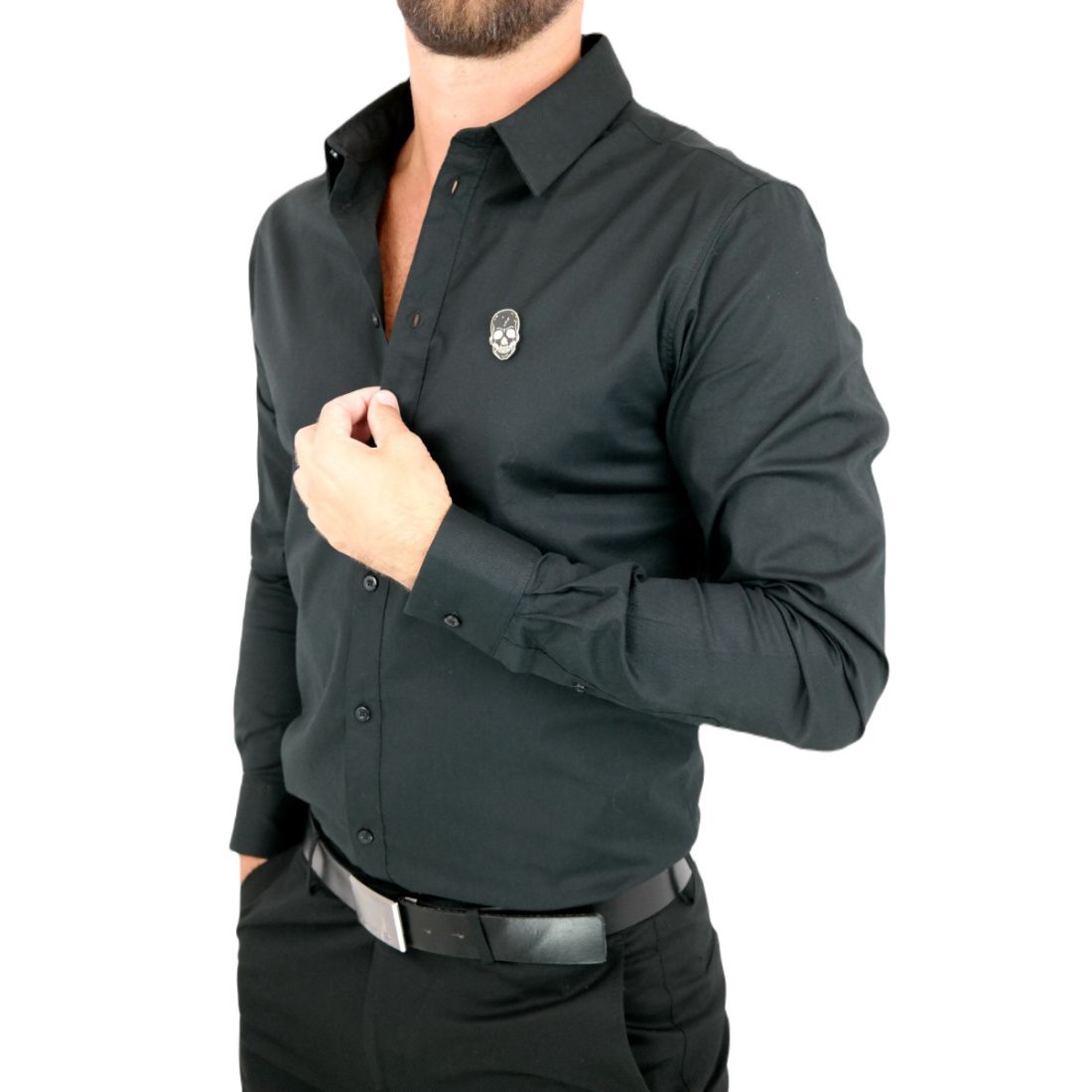 Koszula przy kołnierzyku ma efektowny pin - Czaszka - złoto-czara.