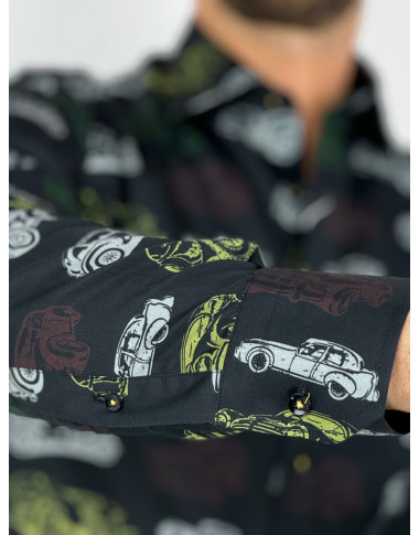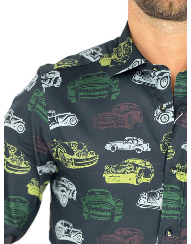- GIOVANNI PERA Koszula męska GP350 czarna, auta, kolorowe, samochody