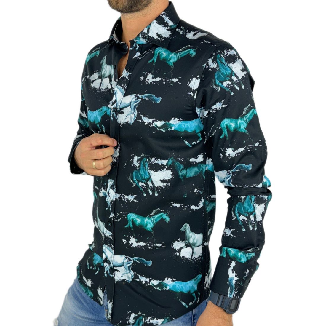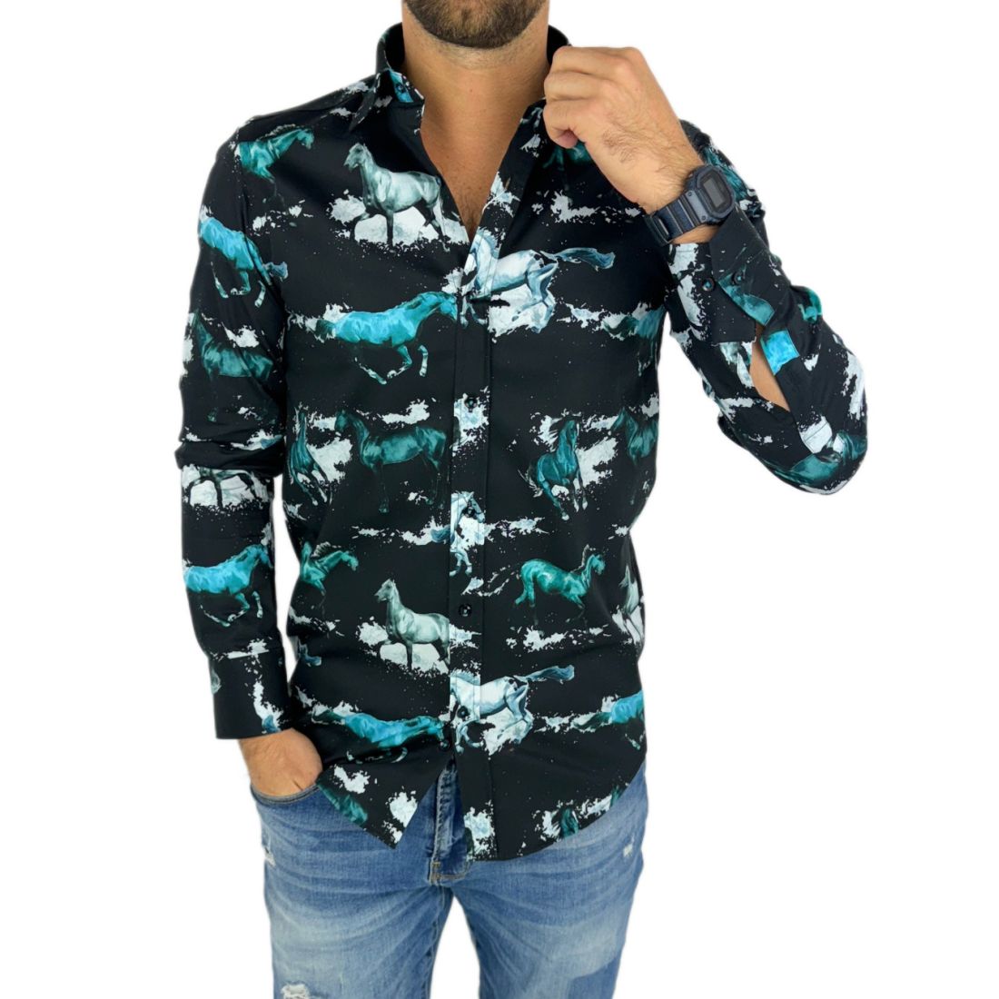 - Mankiety wywinięte na wagę złota: Drobne detale robią różnicę, a wywinięte mankiety tej koszuli nadadzą Ci elegancji i stylu.