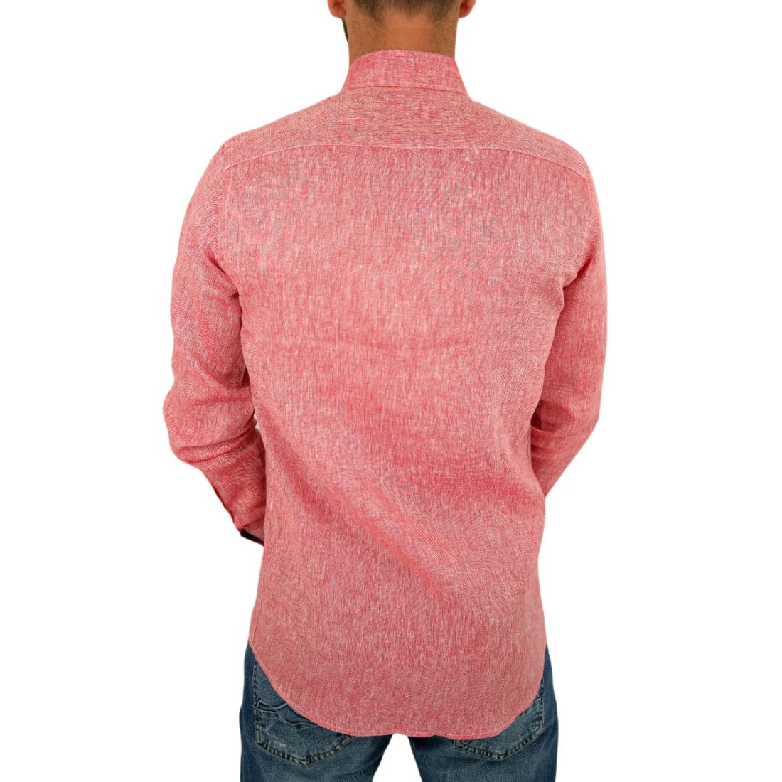 GIOVANNI PERA Koszula męska GPL3 czerwona LEN, wykończenie kolorowe