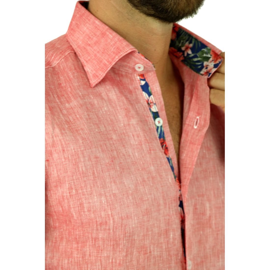 Odkryj niezrównaną koszulę lnianą męską, której kunszt i różnorodność kolorystyczna robią wrażenie. Ten włoski projekt jest prawdziwym hitem dzięki swej doskonałej jakości oraz wyjątkowemu designowi, którym rządzą delikatne, kolorowe wykończenia przy kołnierzyku i mankietach.
