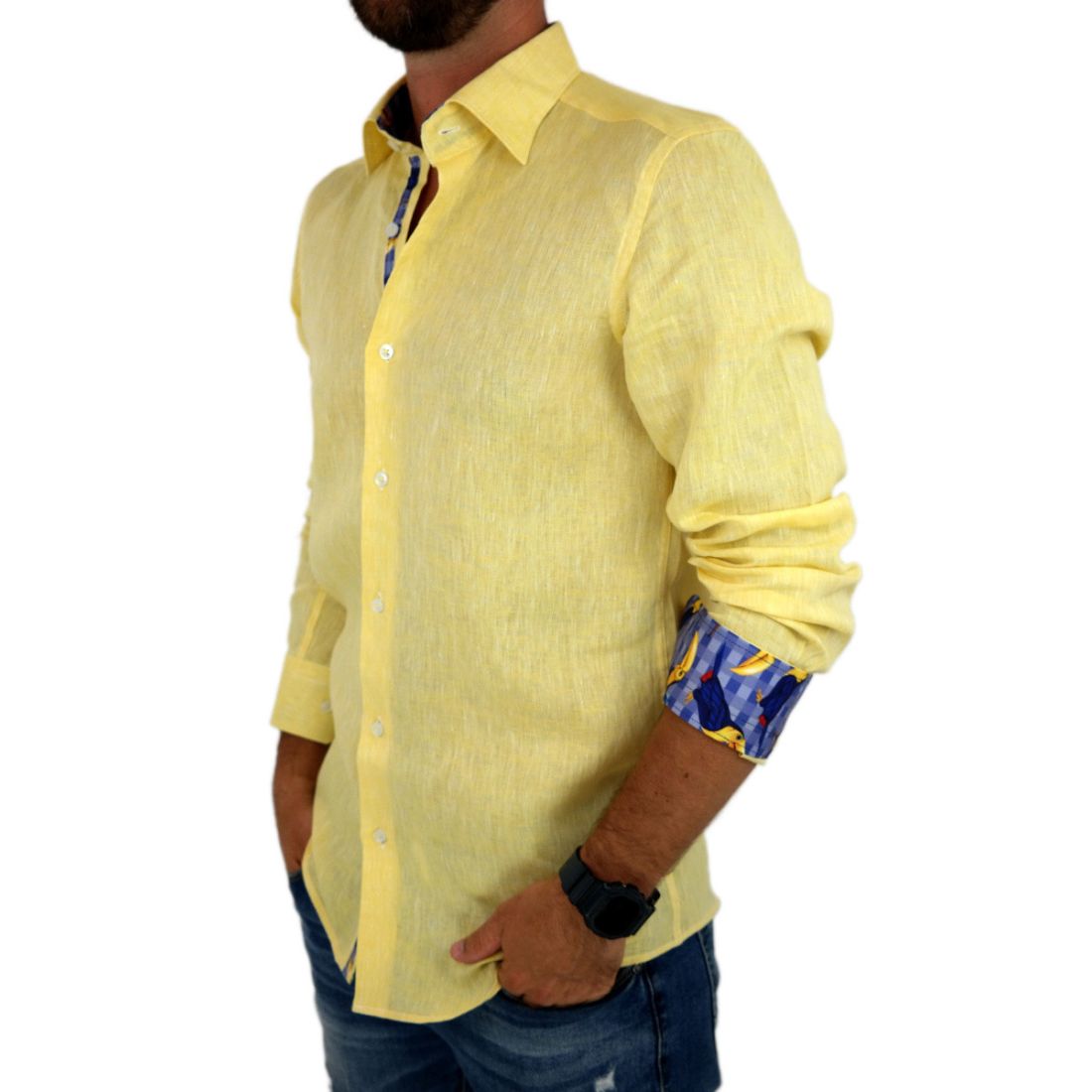 GIOVANNI PERA Koszula męska GPL4 żółta LEN, wykończenie kolorowe