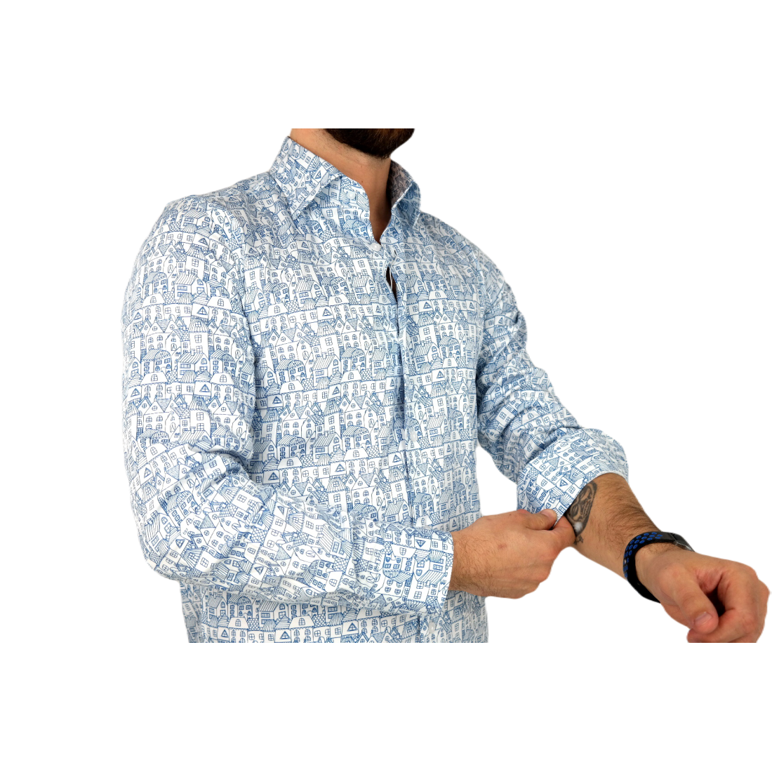 GUISEPPE LUIGI Koszula męska GL13 biała, niebieskie domki