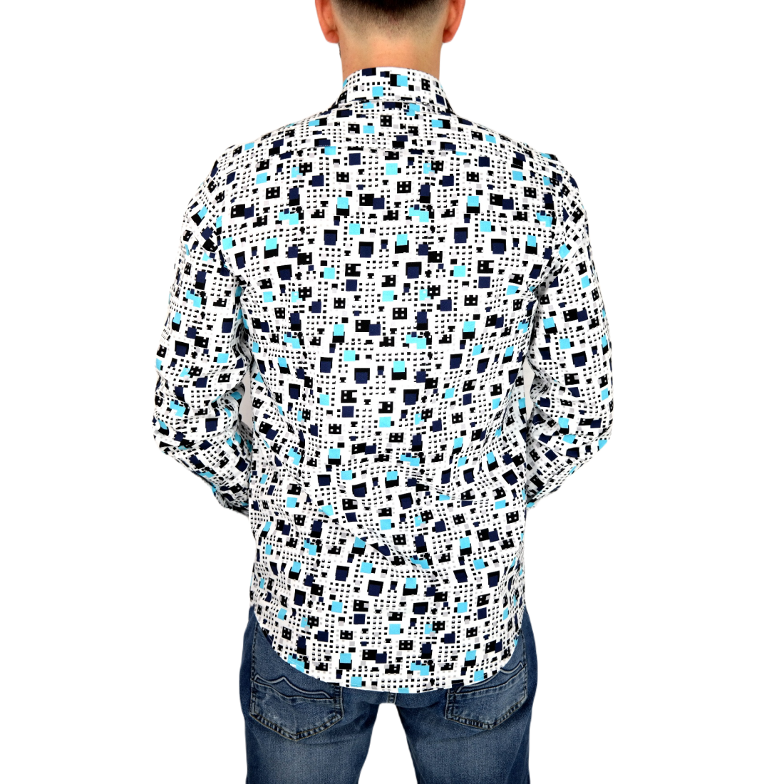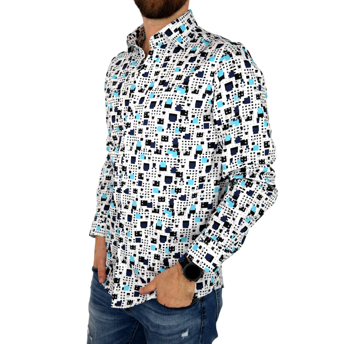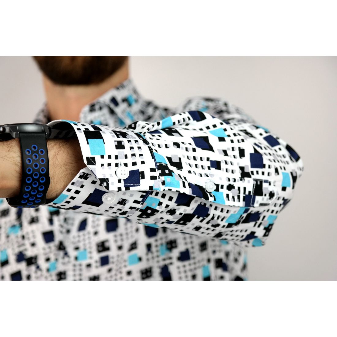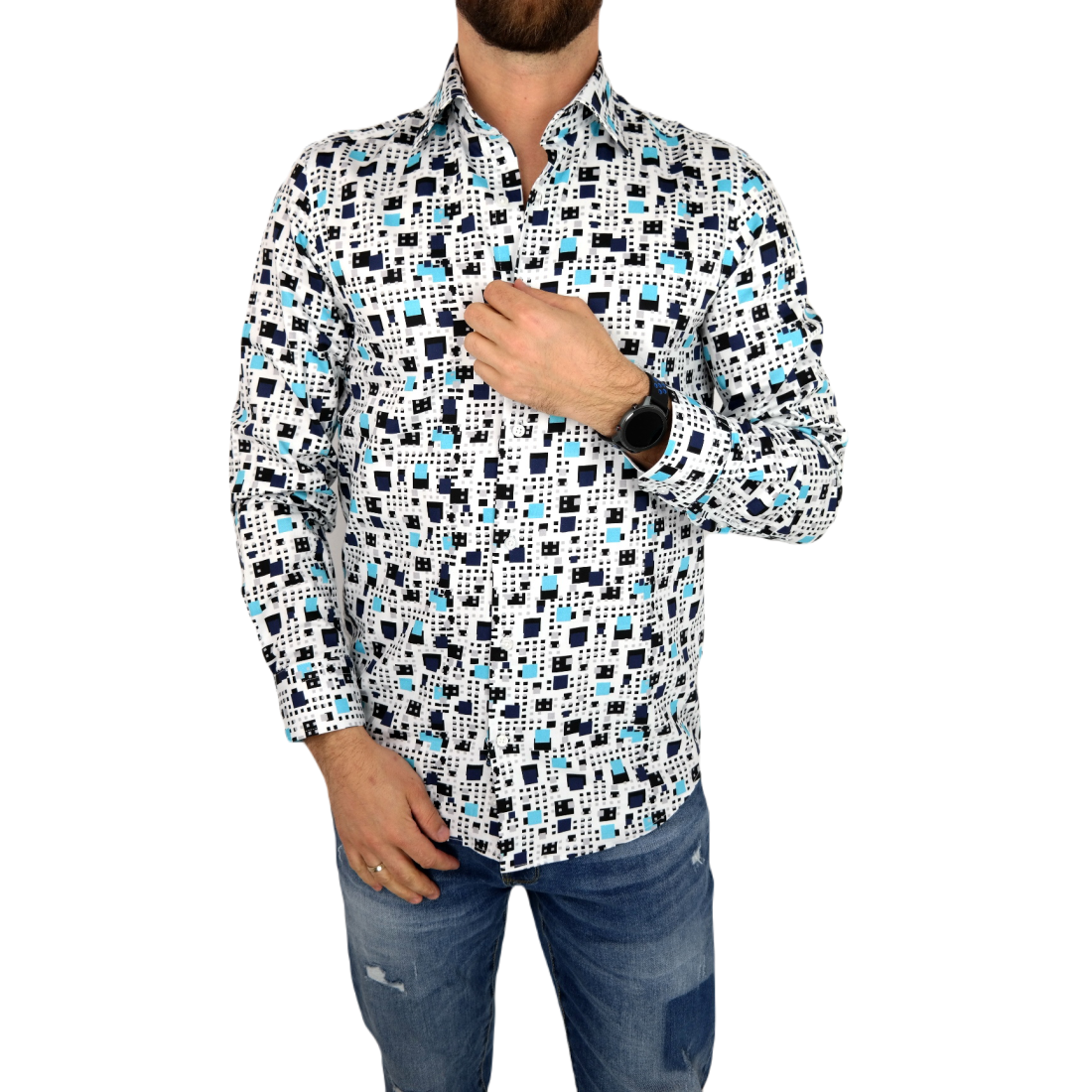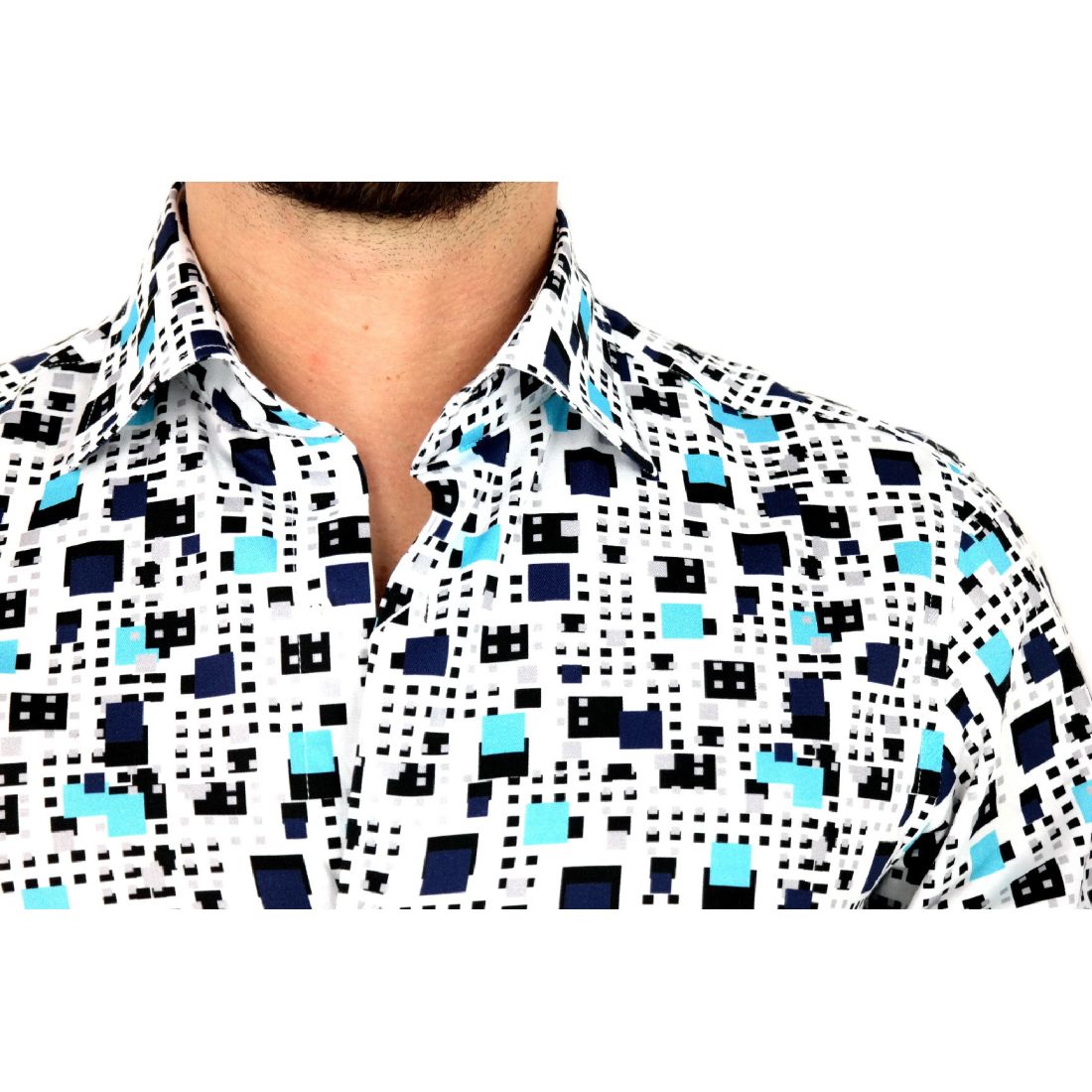 GUISEPPE LUIGI Koszula męska GL14 biała, kwadraty kolorowe