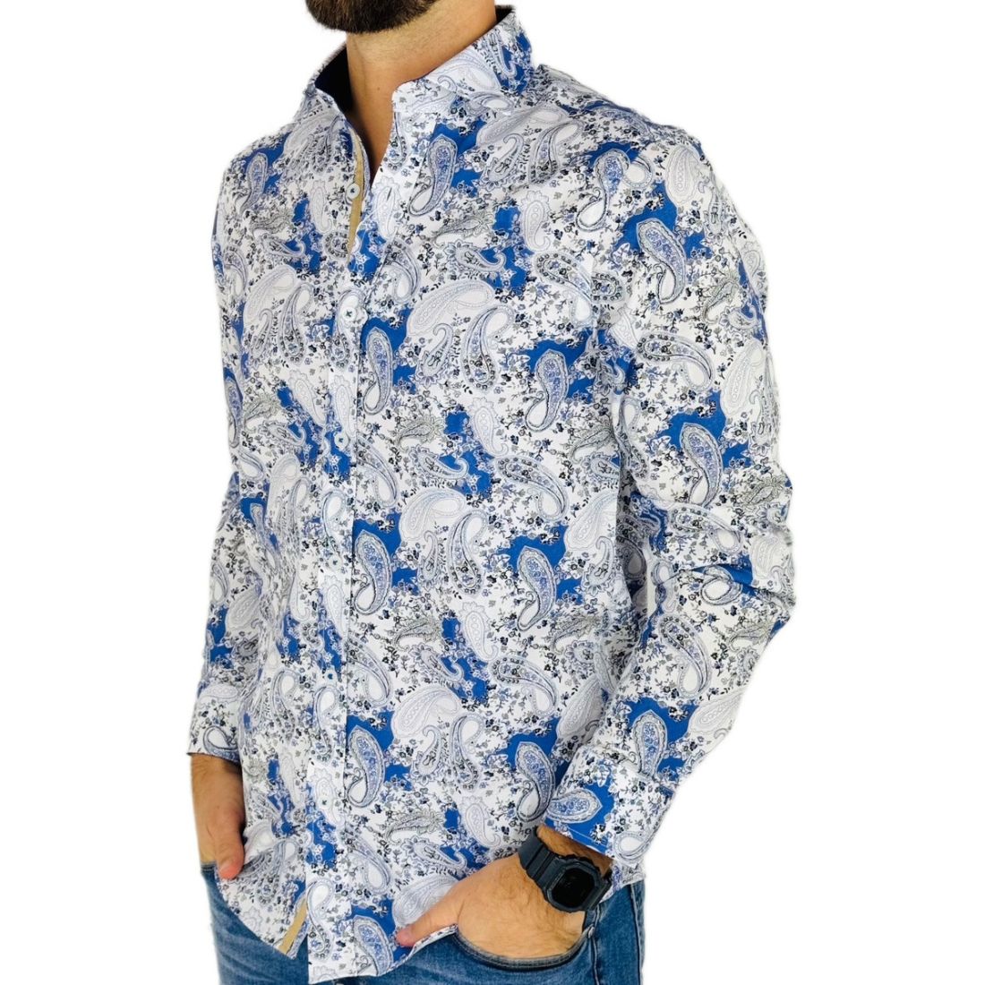 GUISEPPE LUIGI Koszula męska GL58 biała, niebieska, paisley, kwiaty