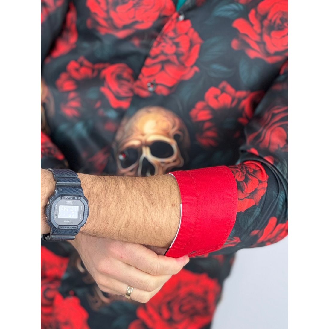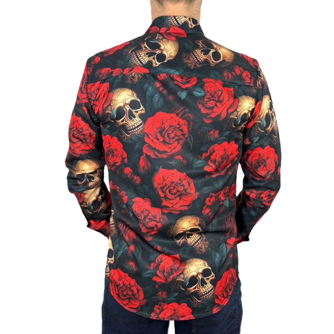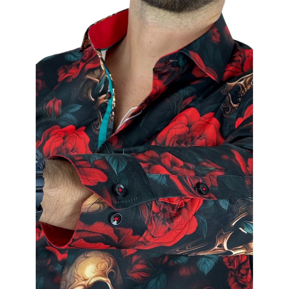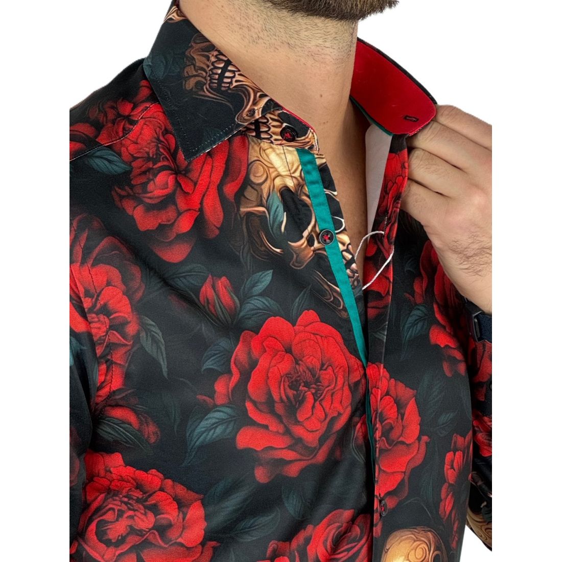 GUISEPPE LUIGI Koszula męska GL63 kolorowa, czerwone kwiaty, czachy